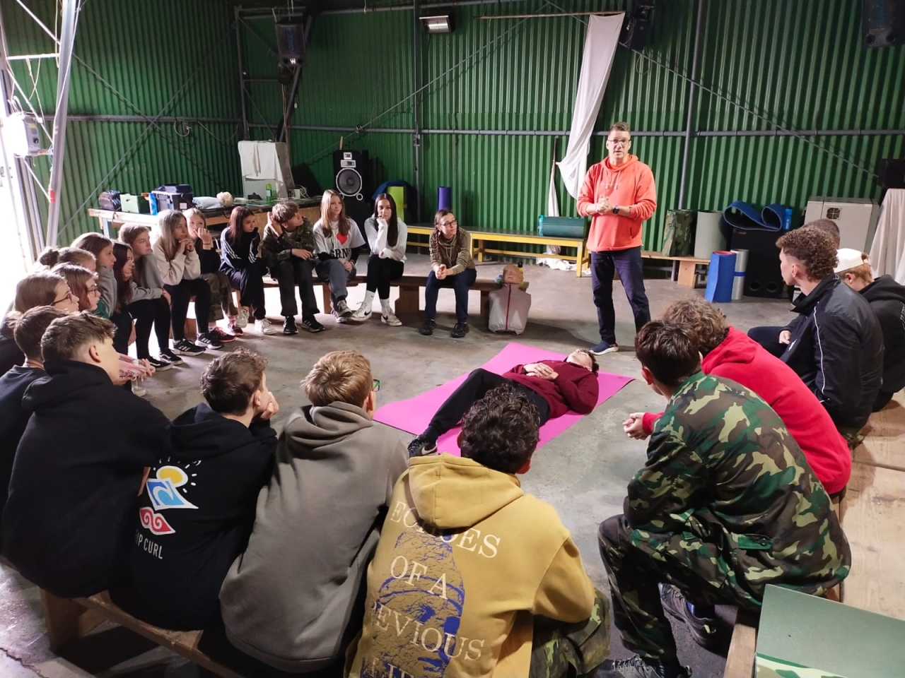 | Téčko poslouchá Dominikovu přednášku o zdravovědě |