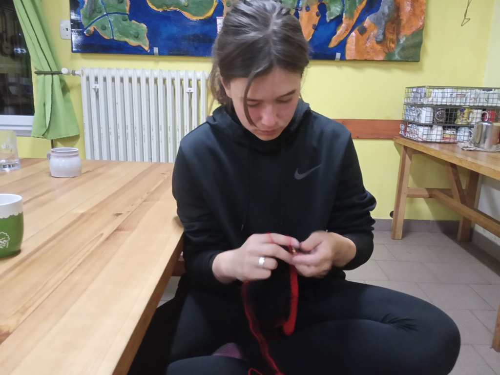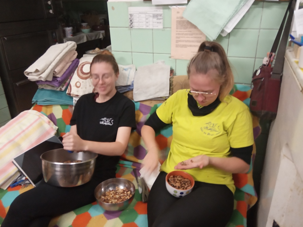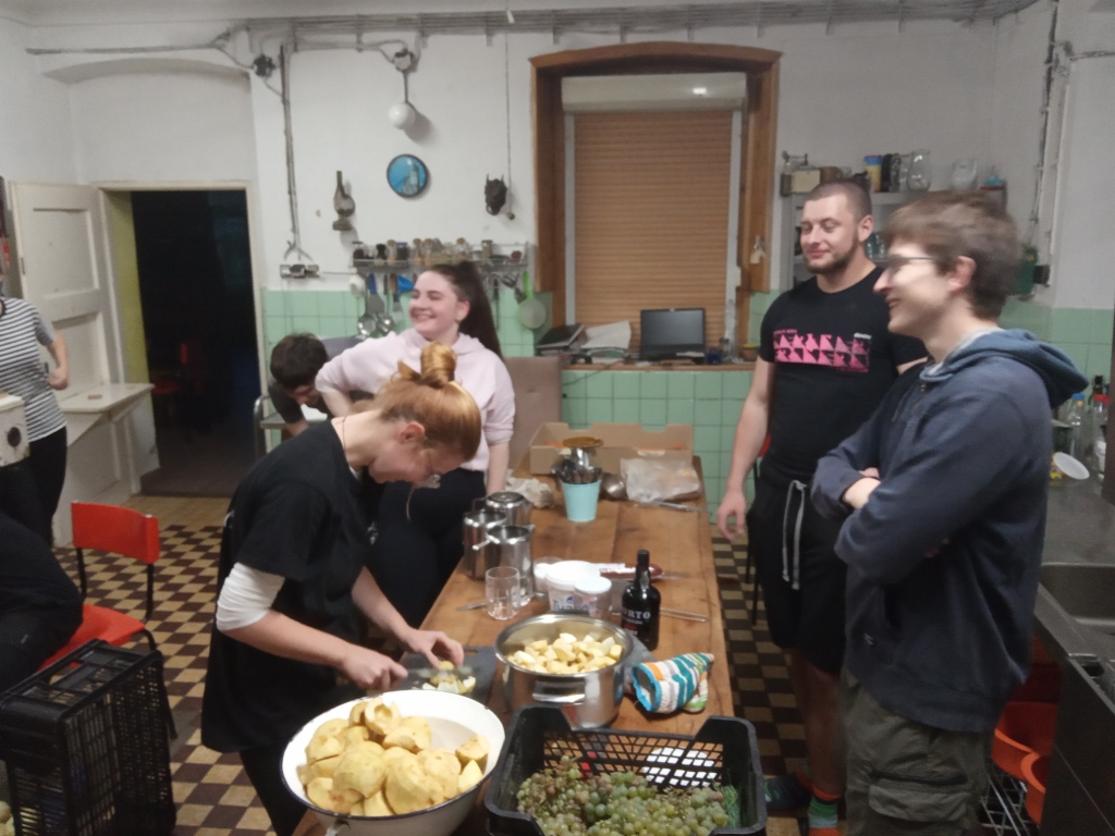 .jpg) | Hned se dáváme do práce, strouhají se jablka na štrůdl |
