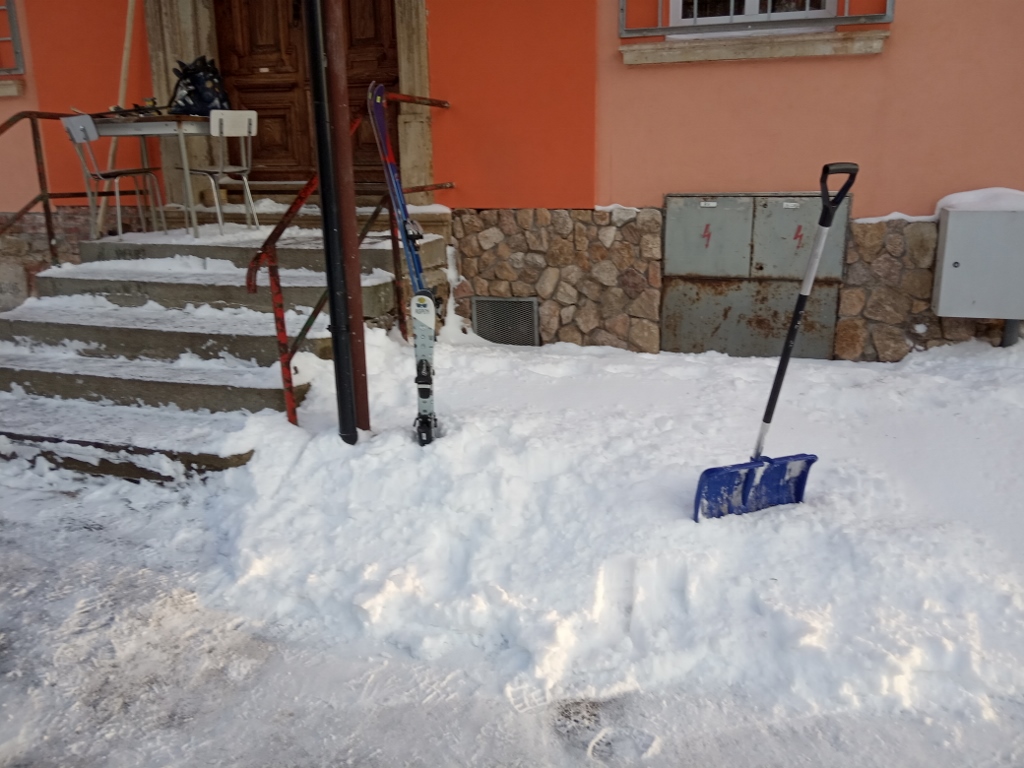 .jpg) | Nejdříve musíme poodhazovat sníh |