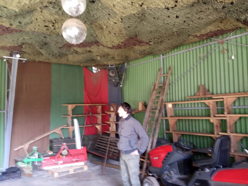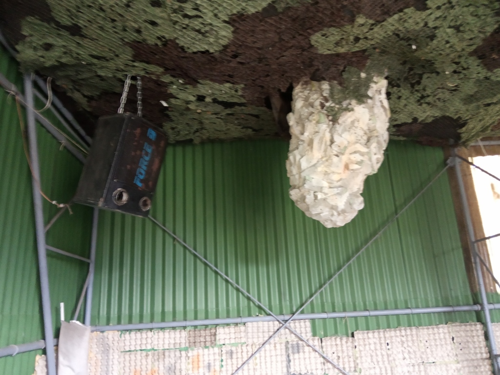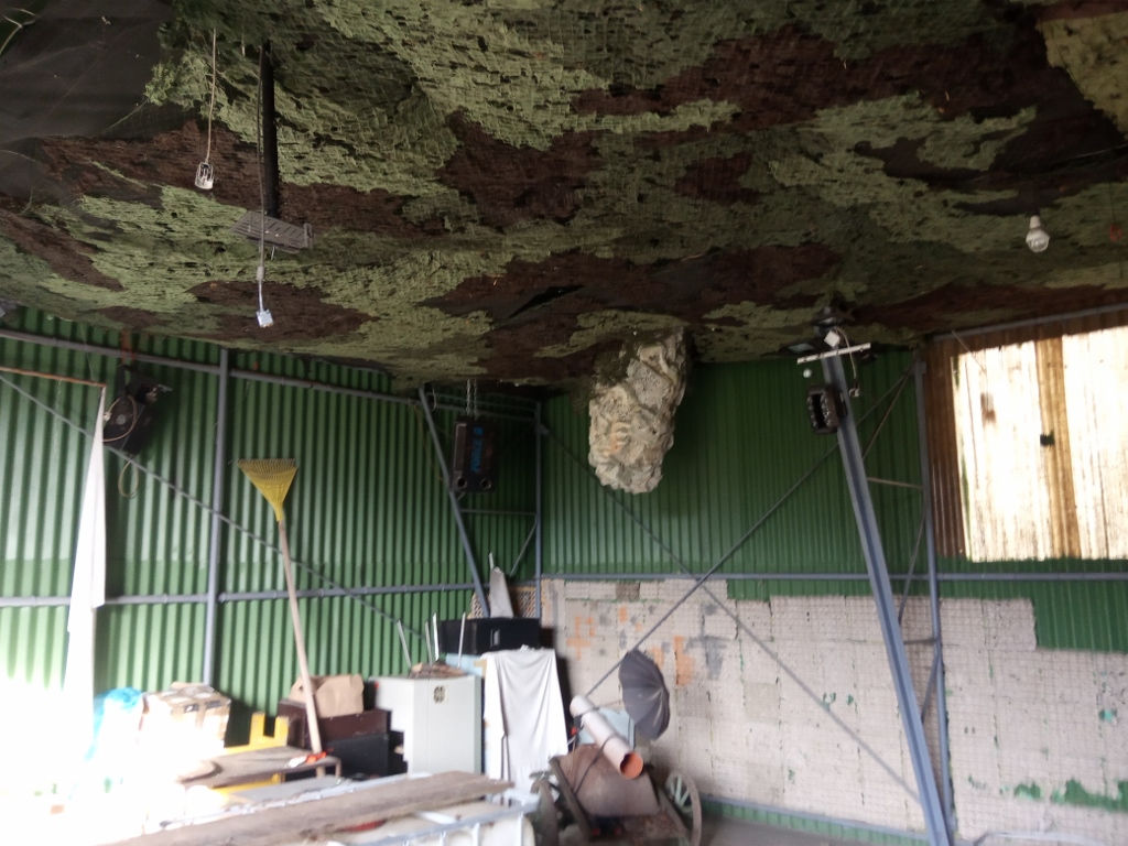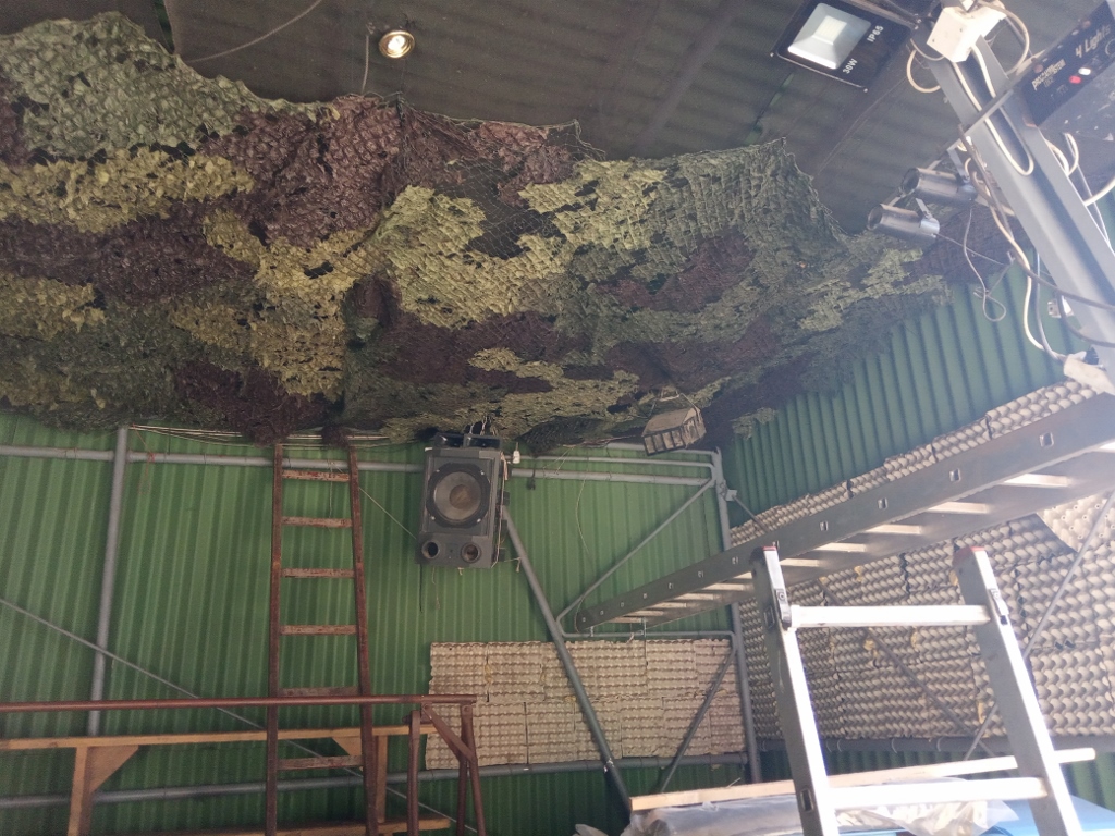 .jpg) | kluci instalují nové stropy - maskovací sítě v hangáru |