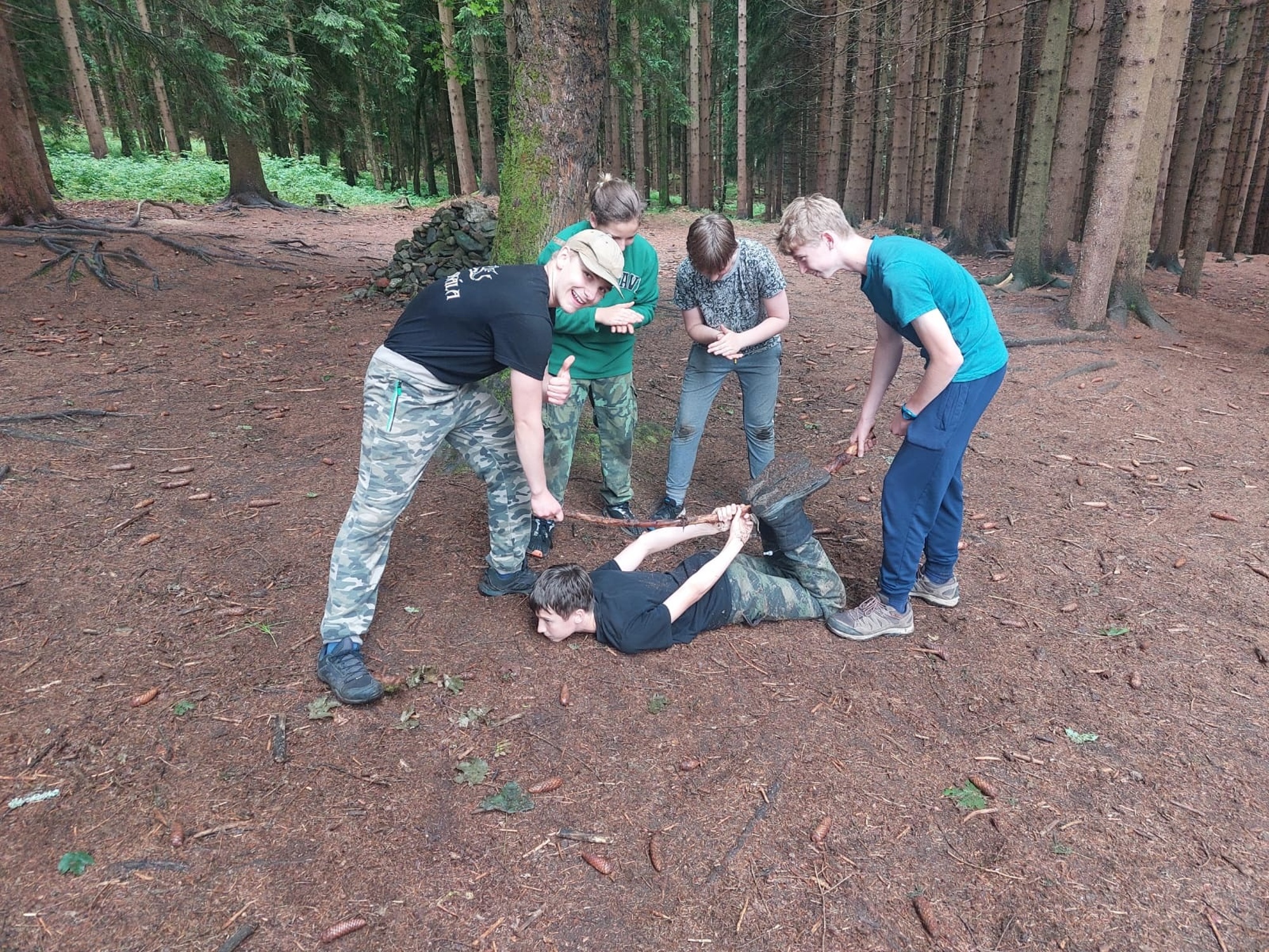 | Ahoj, tak jsme přijeli a už řádíme v lese |