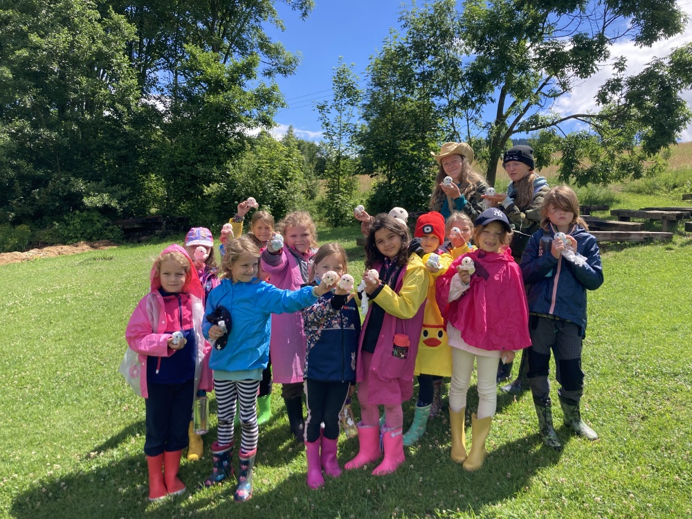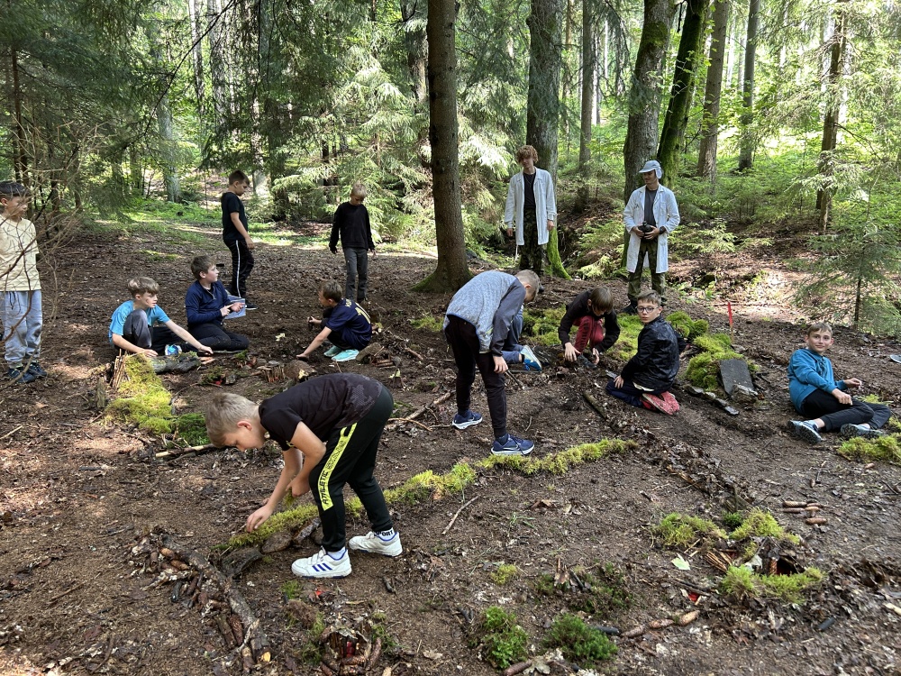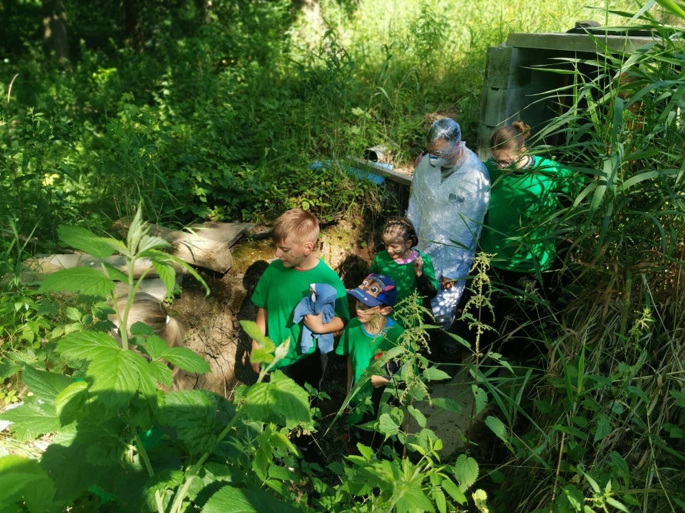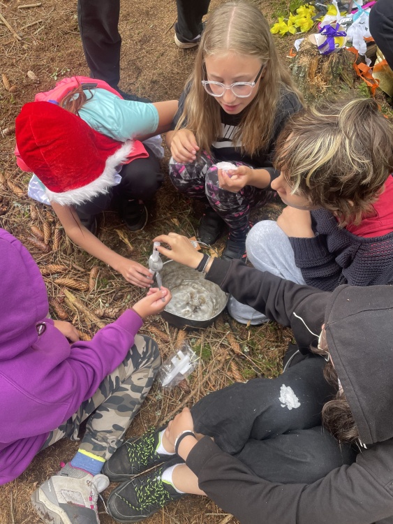| Malí táborníci v lese vyrábějí lék proti infekci |