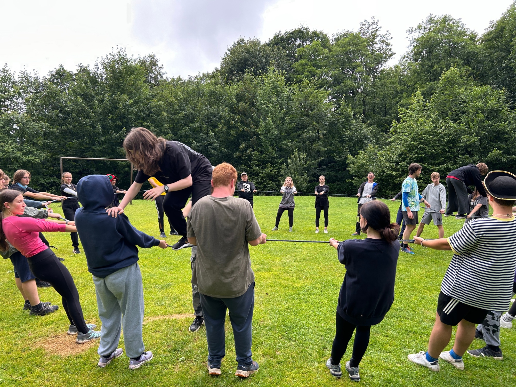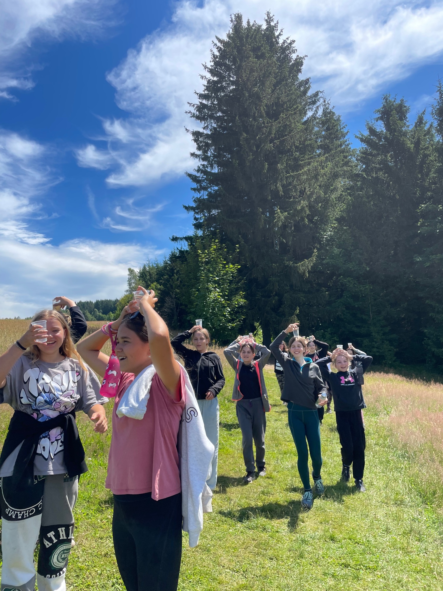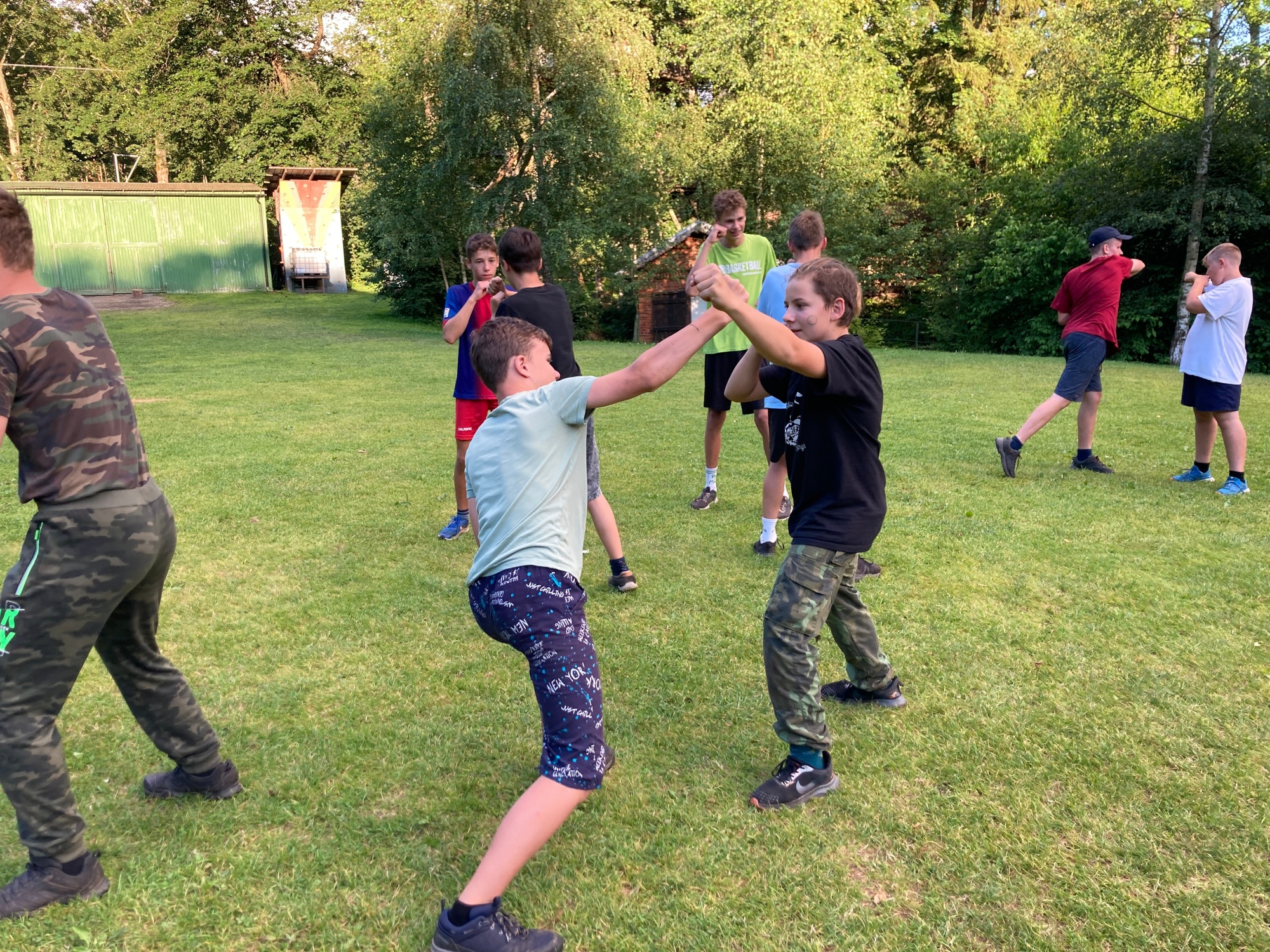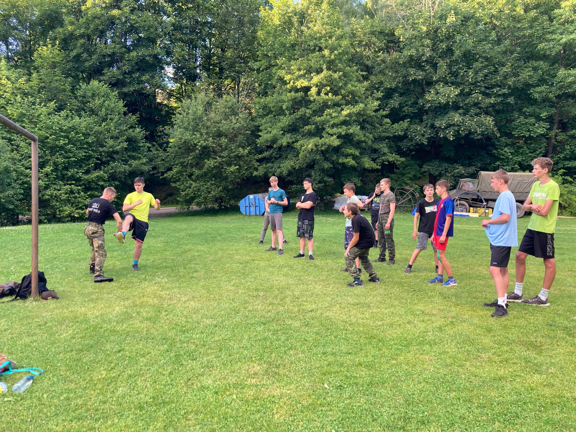 | Společná rozcvička celého tábora |