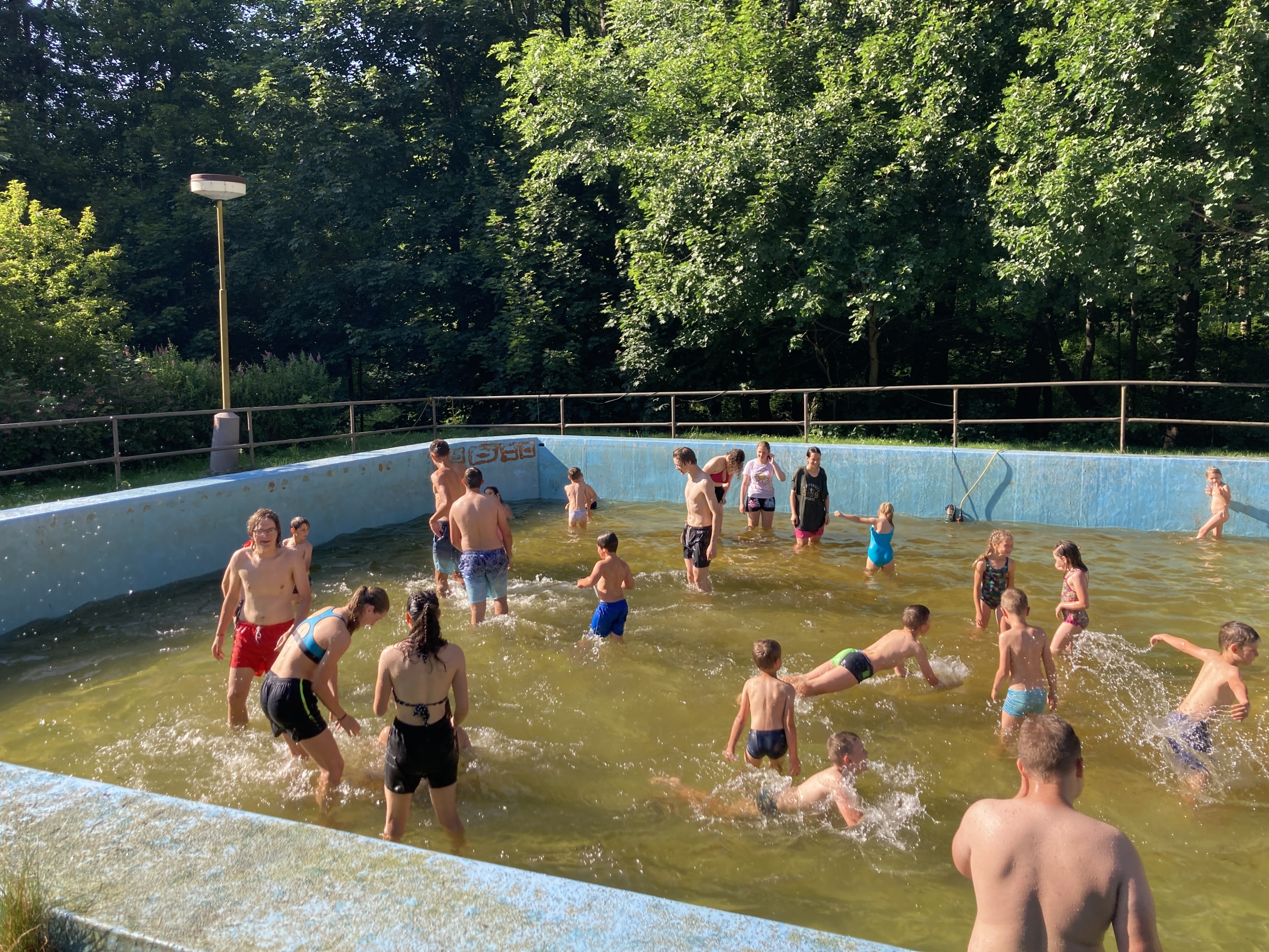 | Po důkladném osvěžení jsme si zablbli také na hřišti, pak ale zase rychle do stínu |
