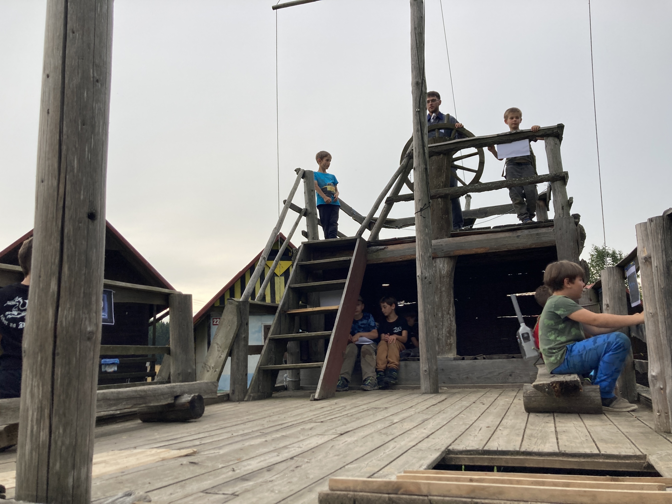 | zde se propadla podlaha, tak musíme přelézt po žebříku |