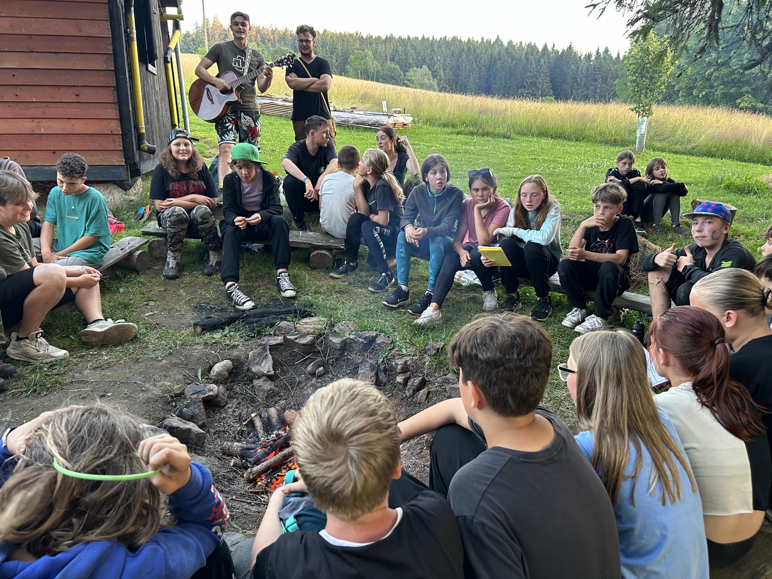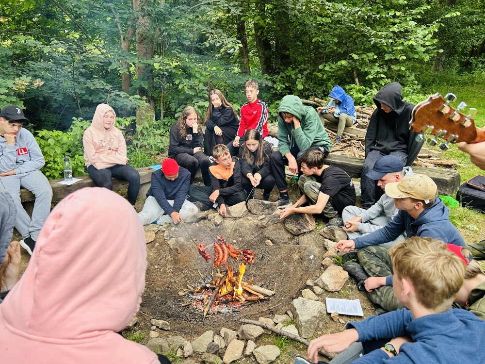 | Opékáme buřtíky a hrajeme na kytary |
