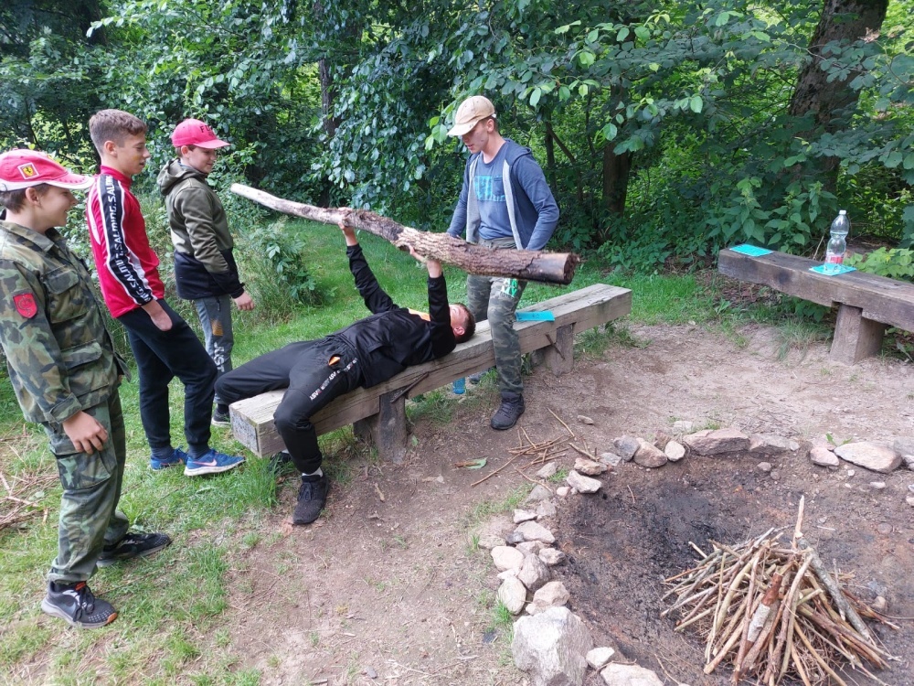 | Při přípravě oddílového ohýnku si někteří udělali čas také na bodybuilding |