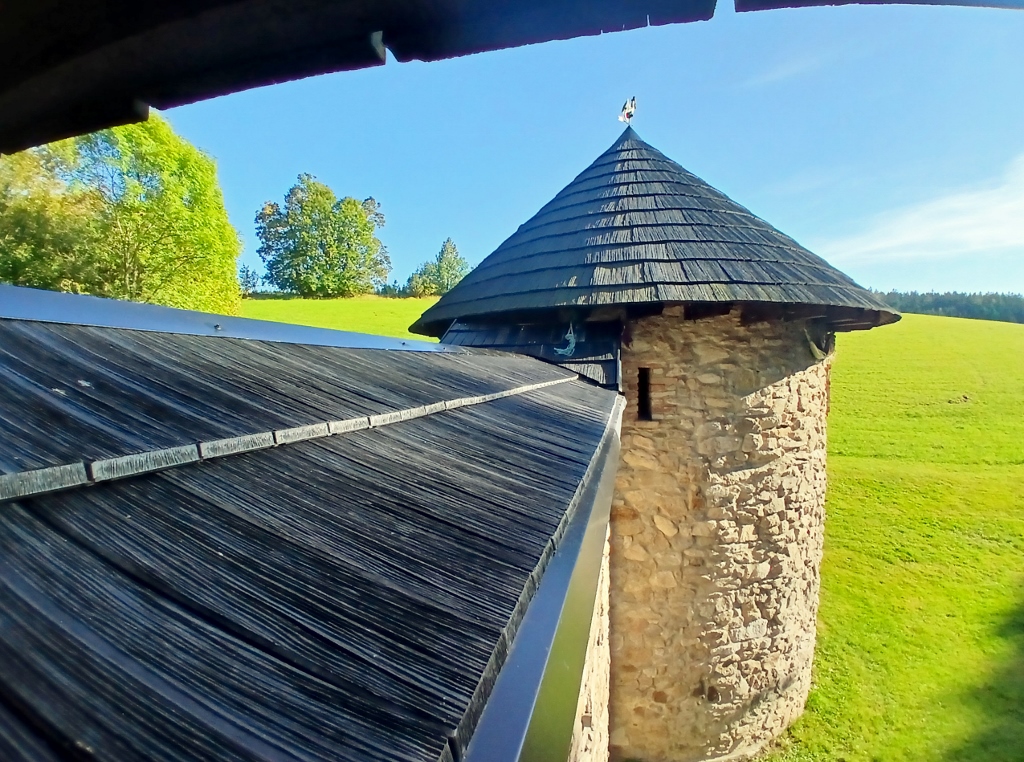 krytina + klempířina - ve spodní části chybí ještě kousek okapnice + krytiny