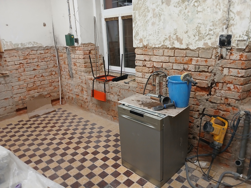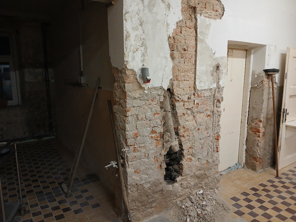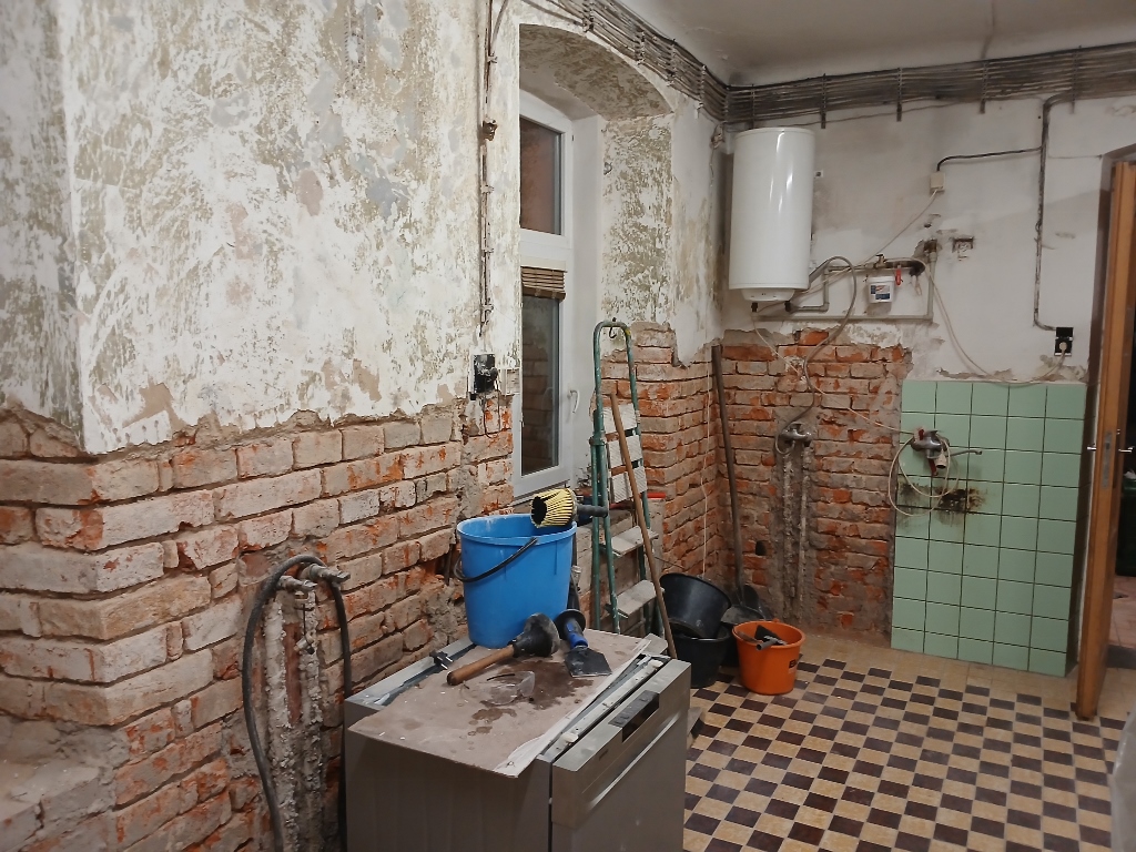 .jpg) | otlučené obklady, proškrábnuté cihly a odřená malba |