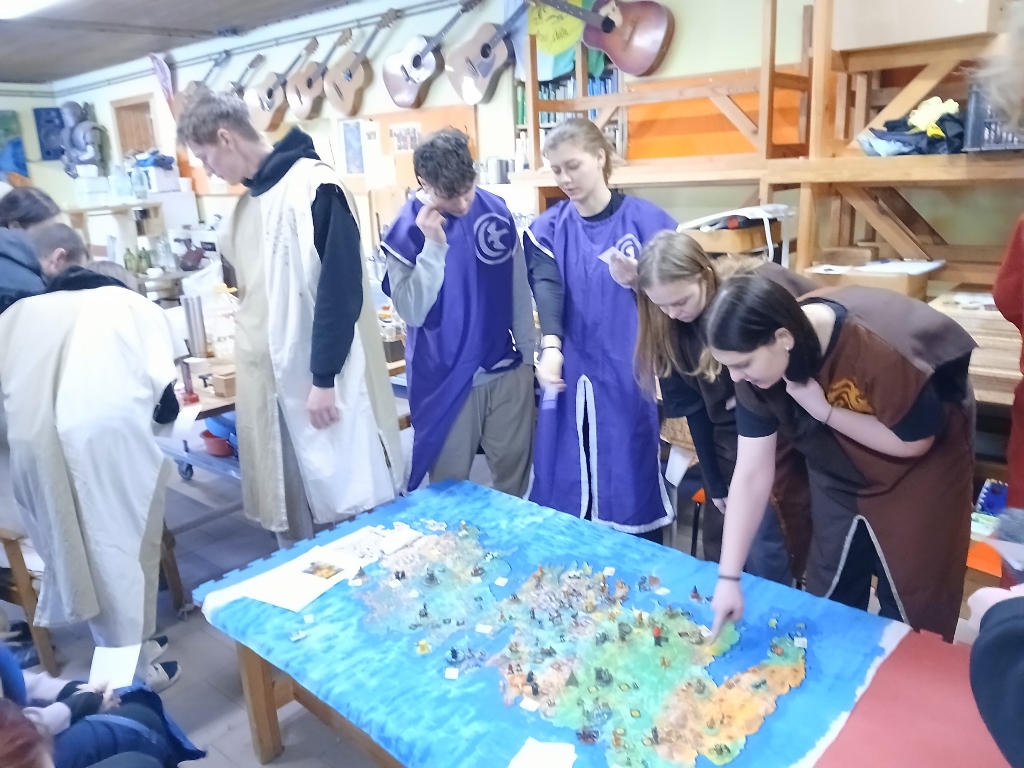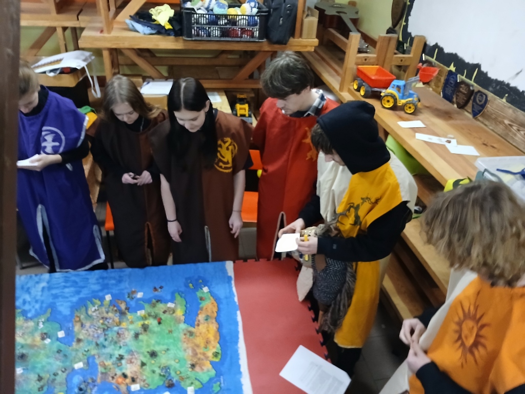 .jpg) | A začínáme - lordi a lady před mapou Západozemě |