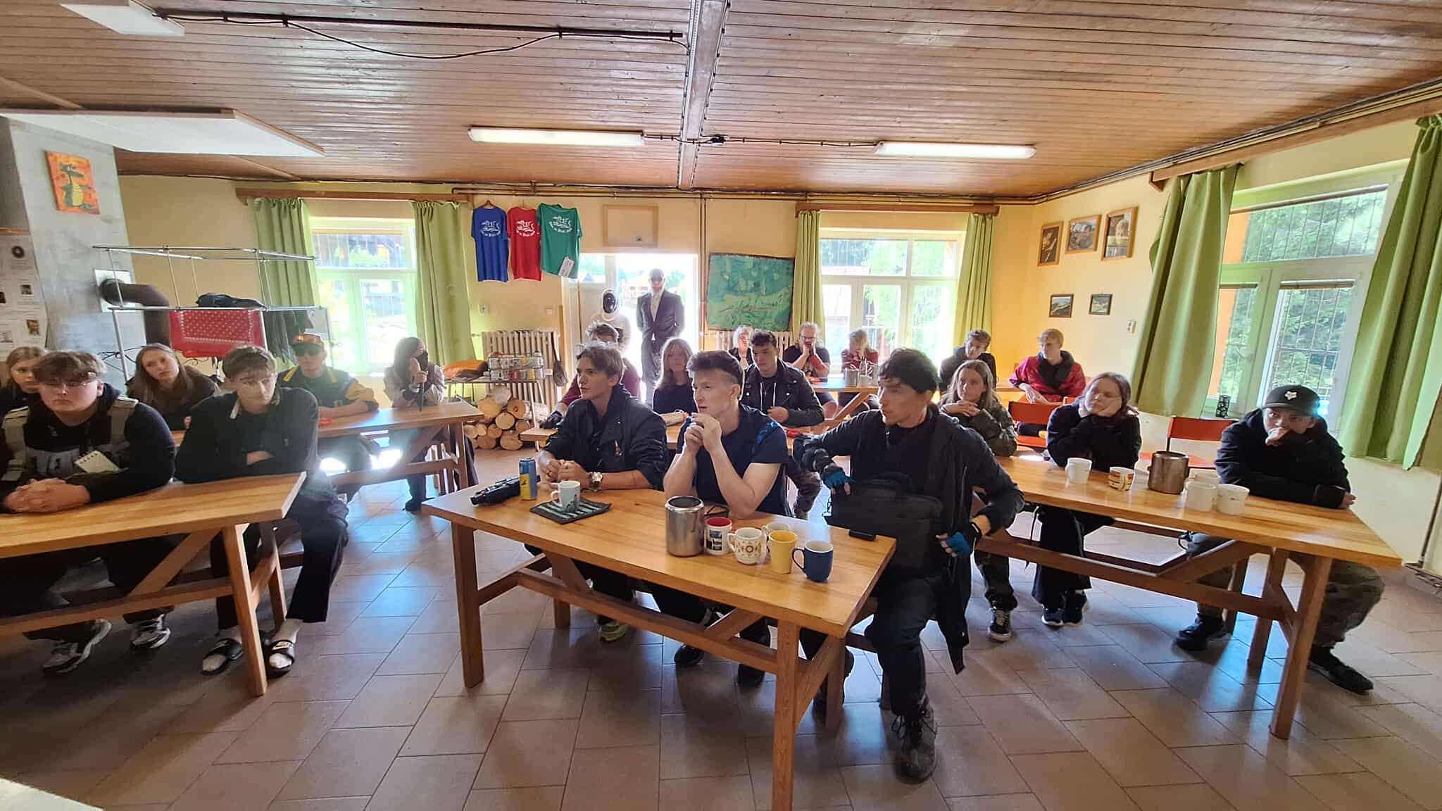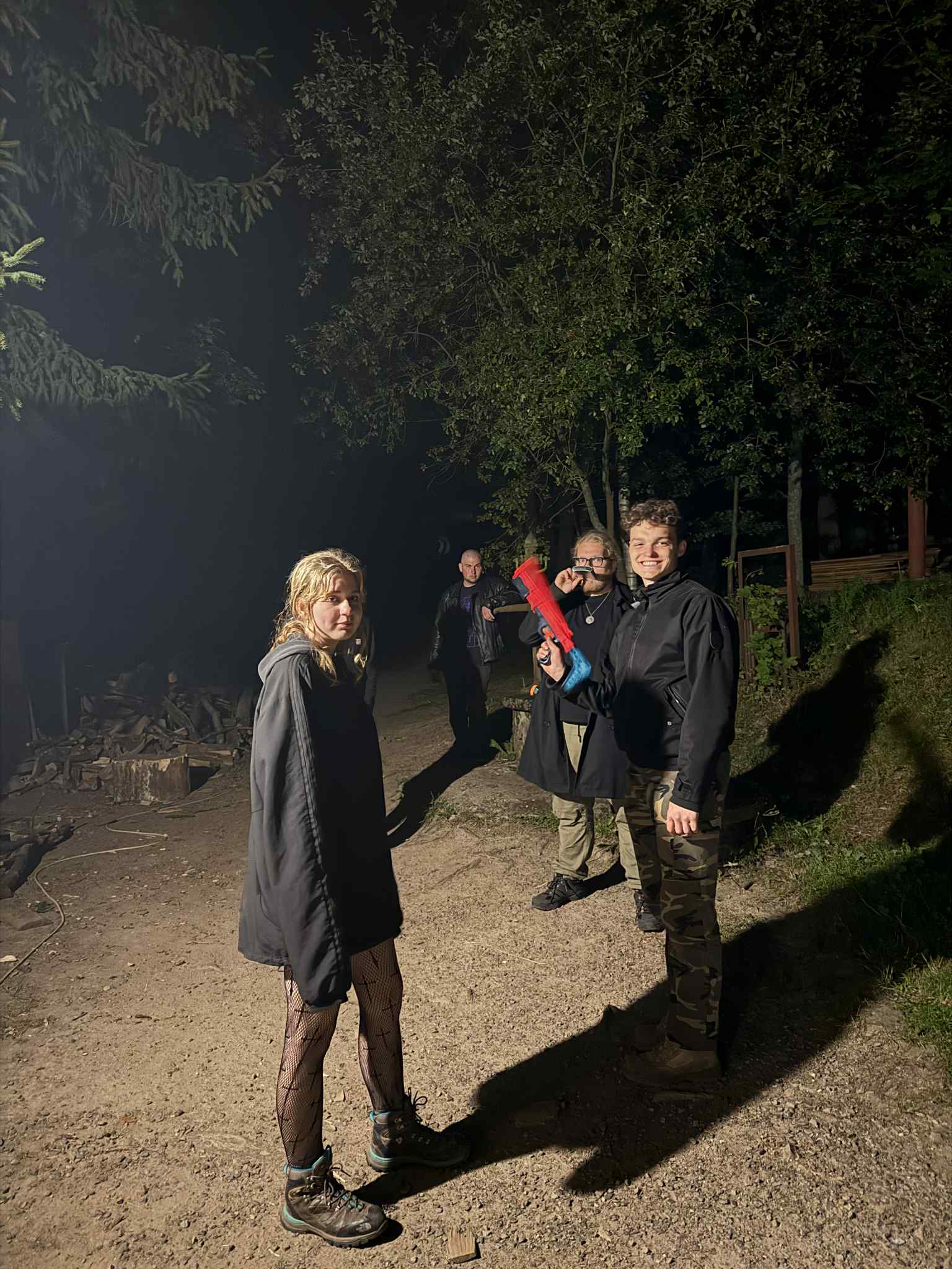 | Večer probíhá u ohně. opékají se buřtíky :) |