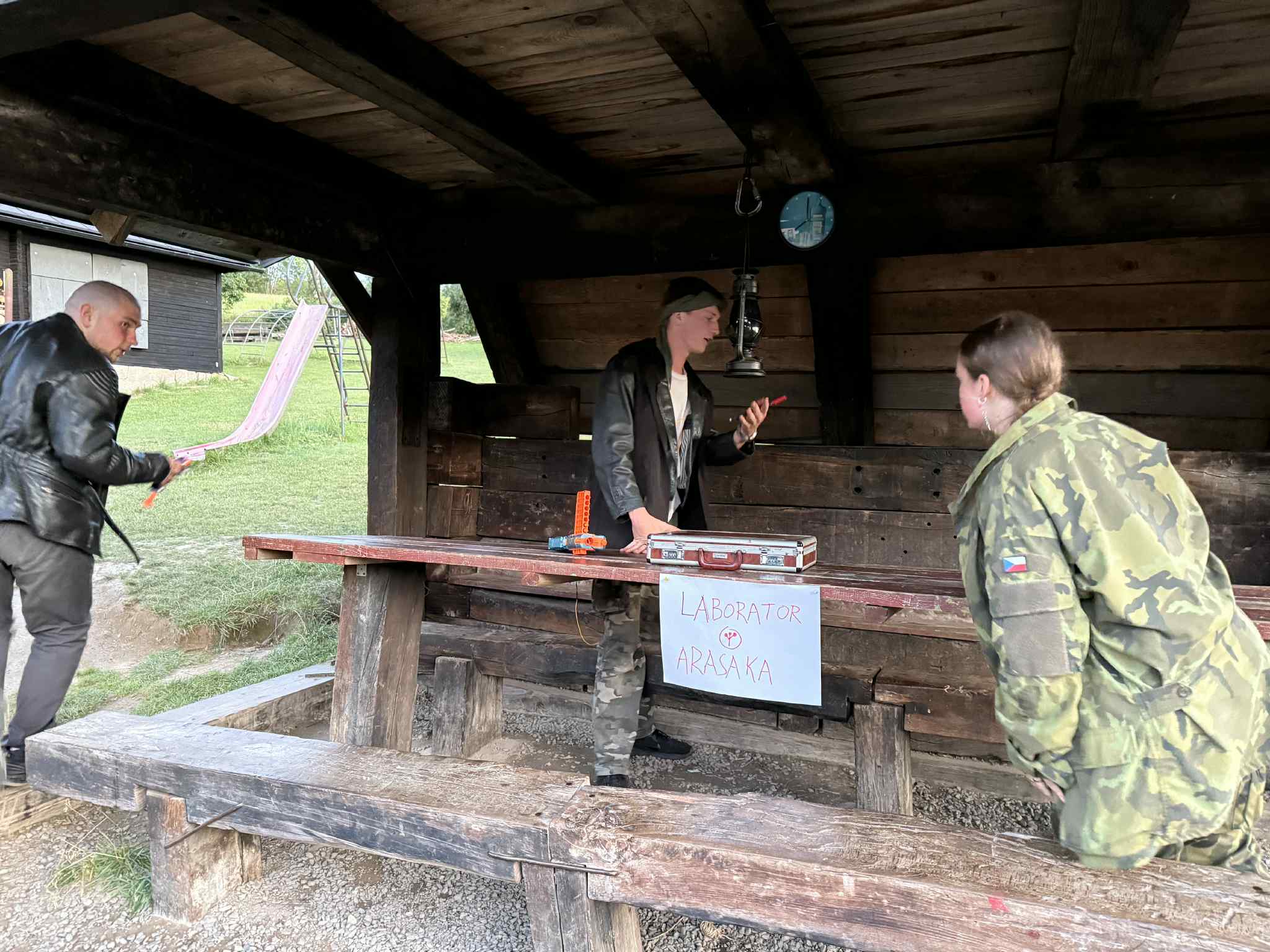 | hráči se snaží vloupat do arasacké laboratoře (kufřík na heslo) |