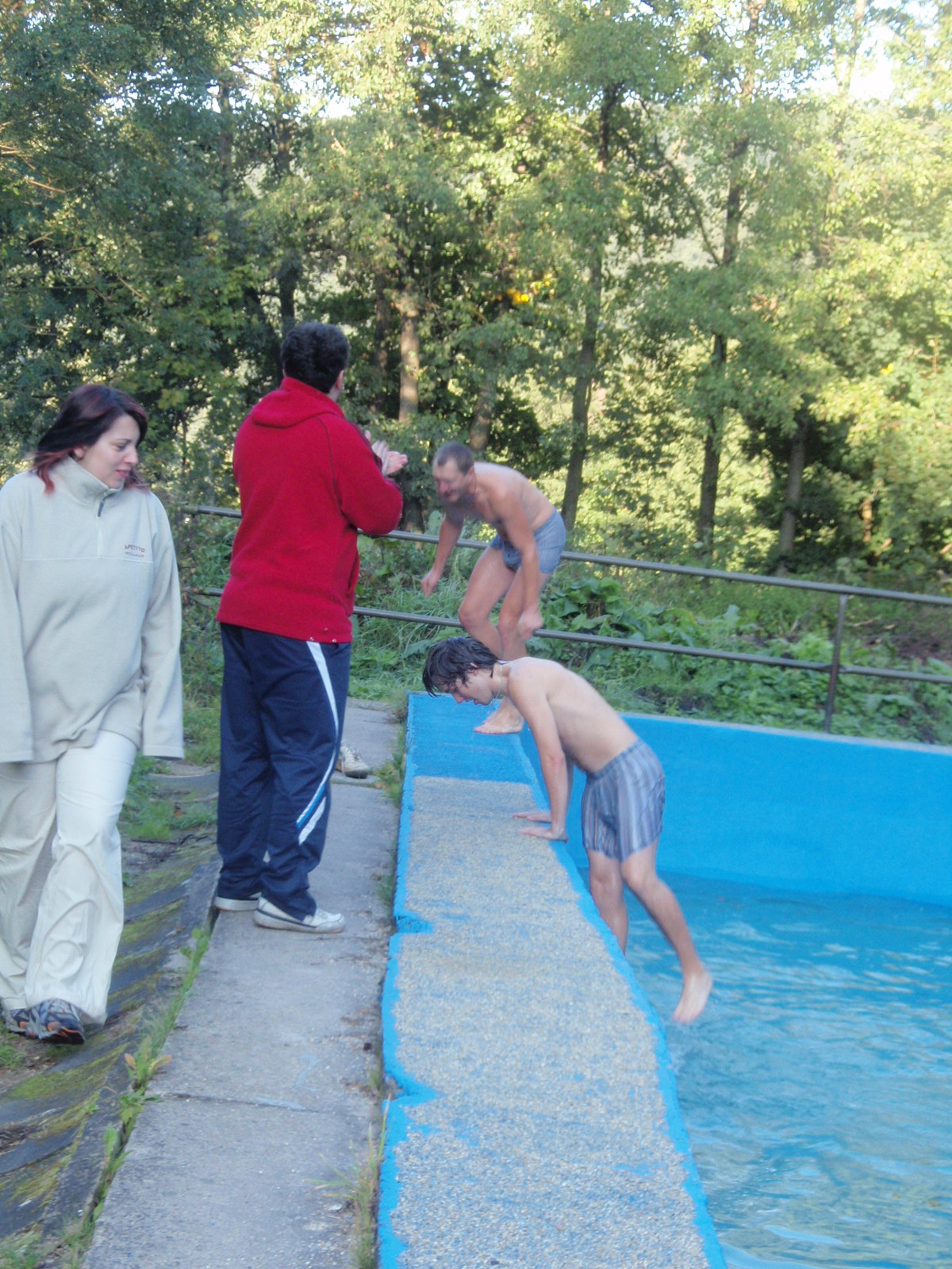| To je zima, nosíme zimní bundy, ale svítí slunce a když vlezeme do bazénu, dostaneme nějaké akcie do hry... |