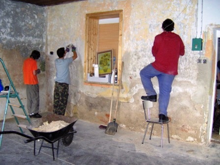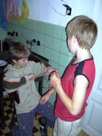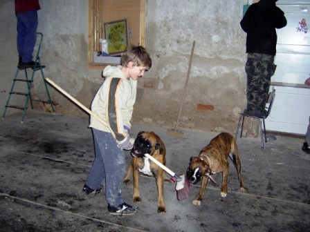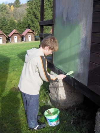 | Jen o trochu menší chlapi si malují chatku |