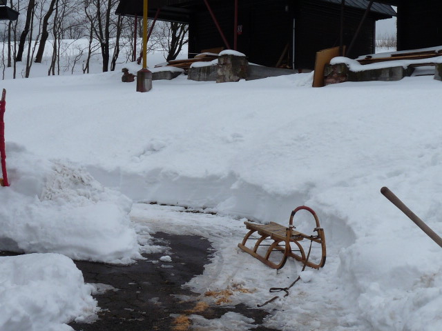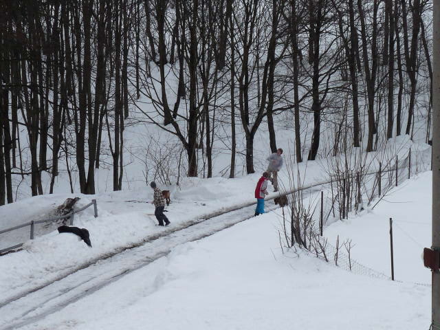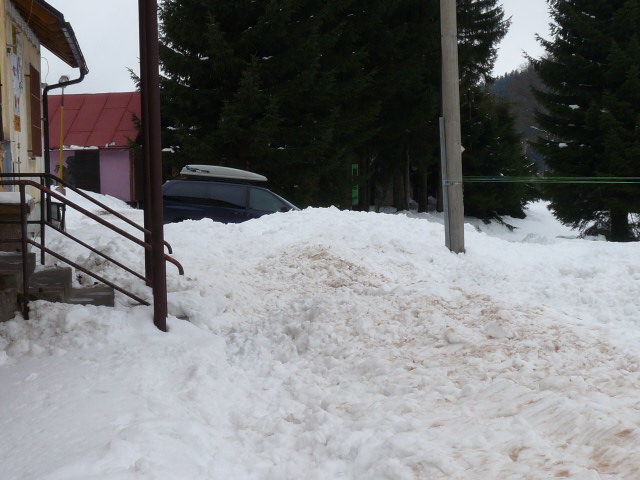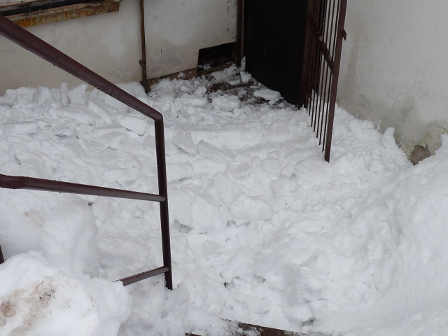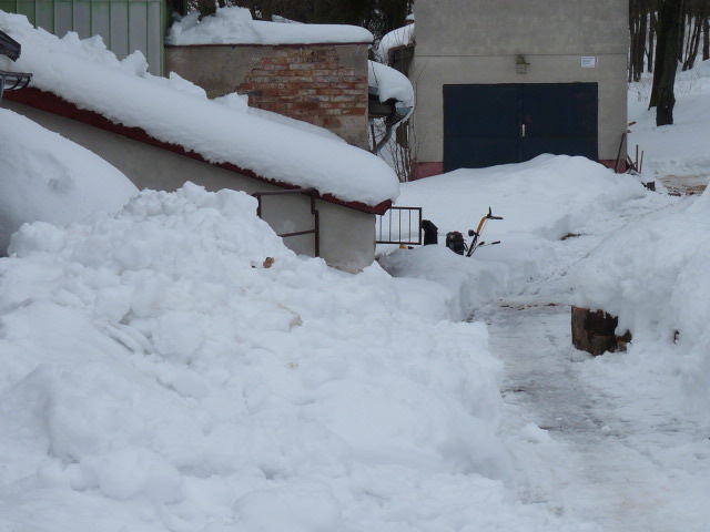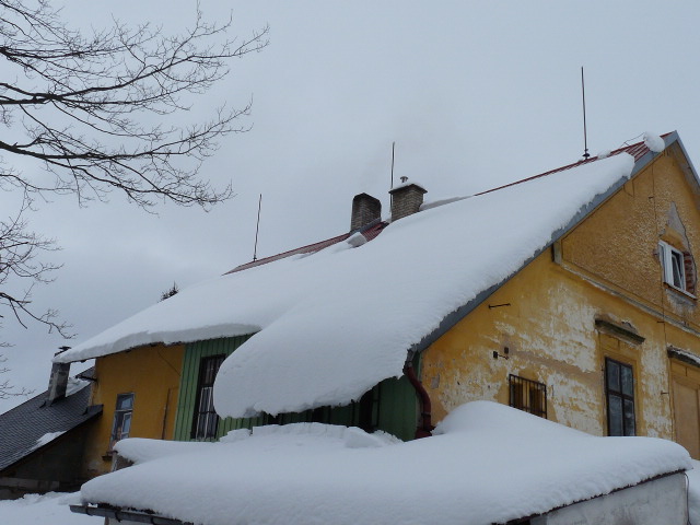 | Ze střech visí převisy, nikdo nesmí chodit přímo pod střechou |