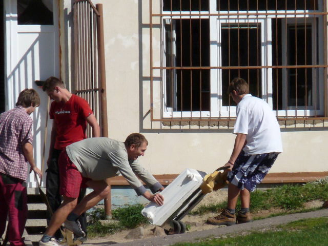 | Nejsilnější chlapi připravují materiál pro topenáře |