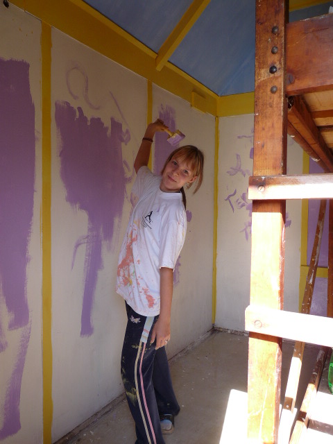 | Děvčata malují chatky - Veverka maluje fialovou |