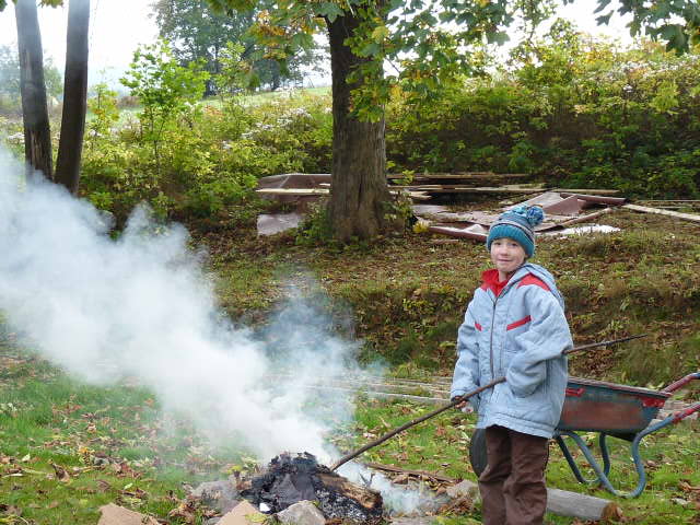 | Některé slečny hrabaly listí a pálily jej na ohníčku |