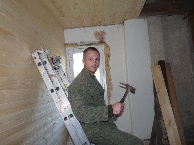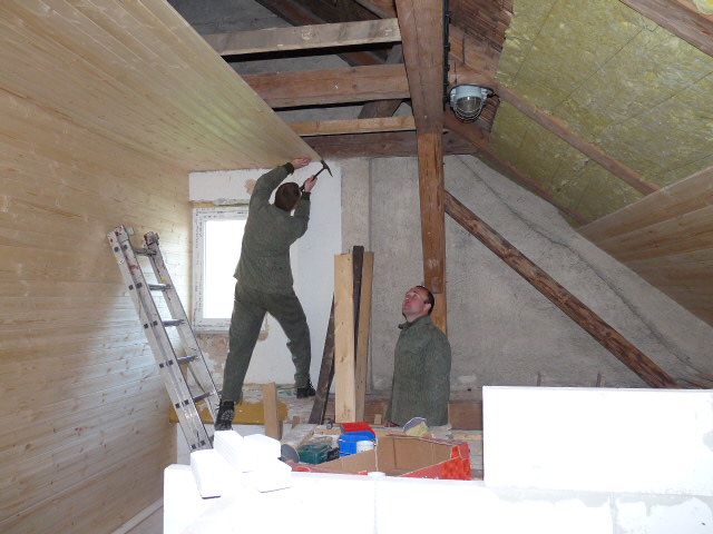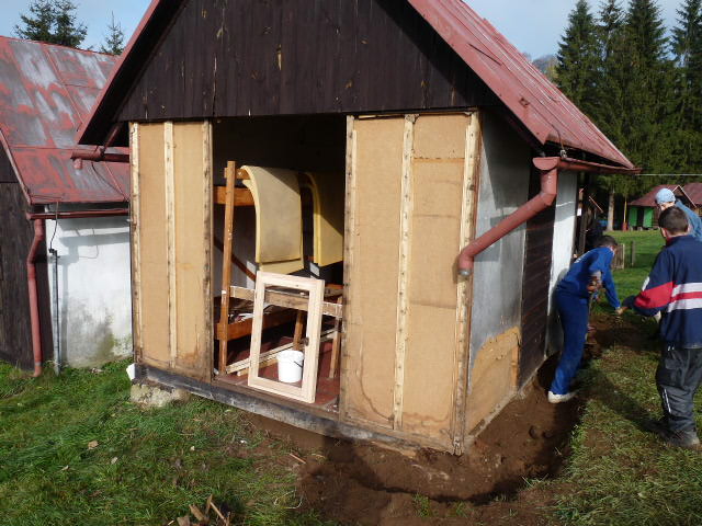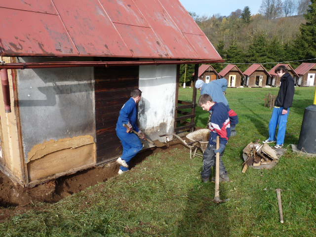 | Chalpi,hoši pracují na opravě chatky č. 21 |