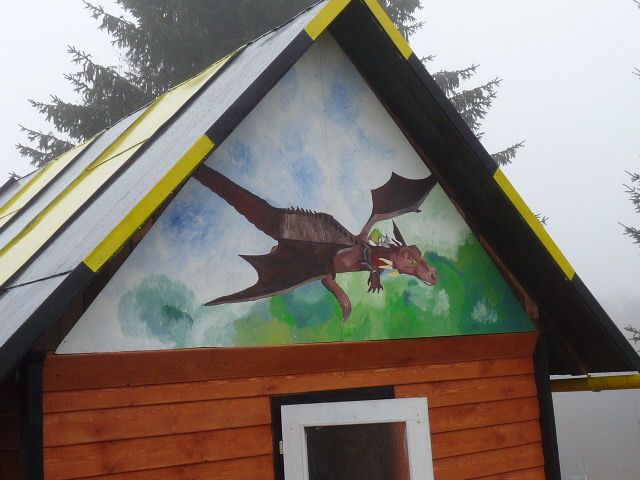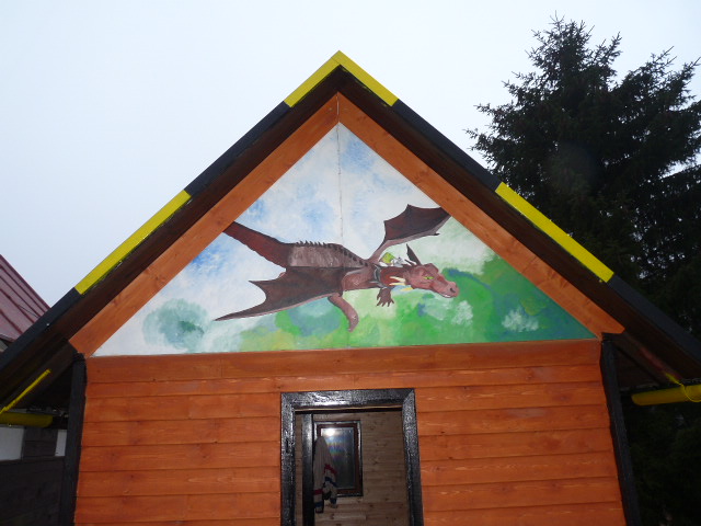 | Nová Shrekova chatička - Radka namalova Shrekovi průčelí |