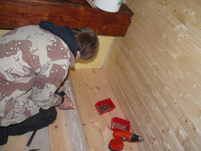 | Honzíík s Borůvkou pokládají novou podlahu |