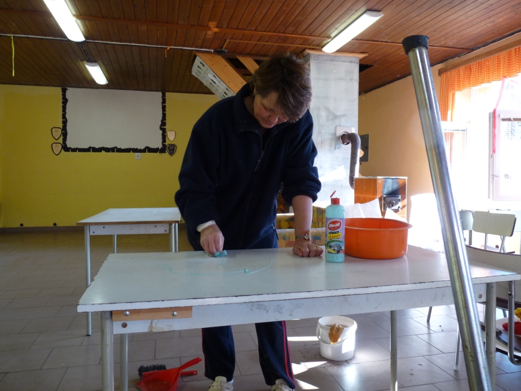 | Radka drbe stoly a proklíná toho ,. kdo je polepil izolepami |