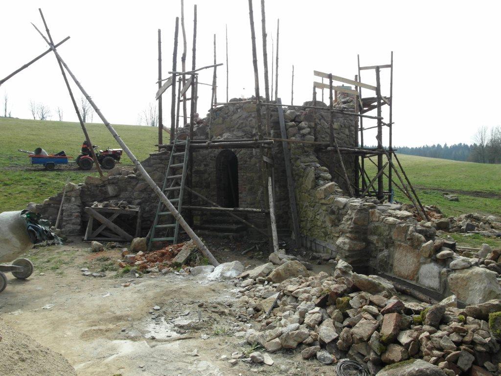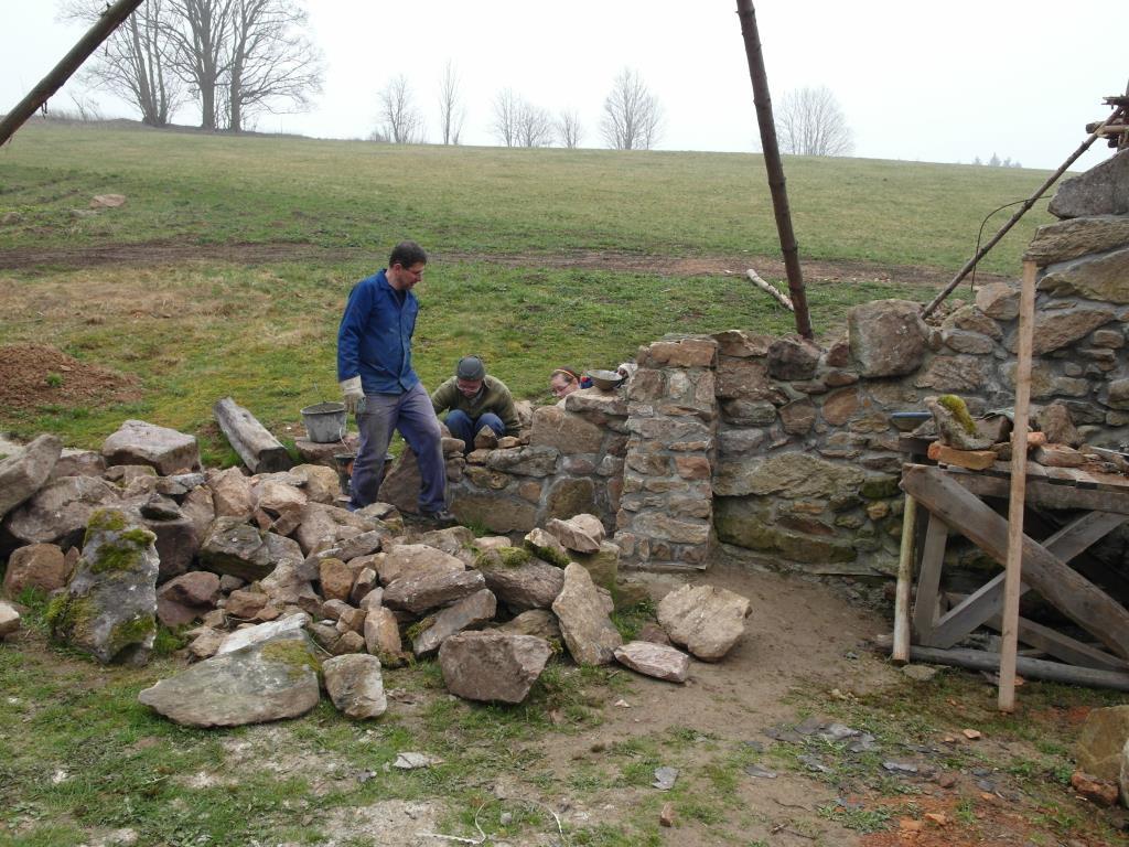 | Mamky se pustily do zdění - nedala jim spát opěrná zeď na příjezdu do hradního prostoru |