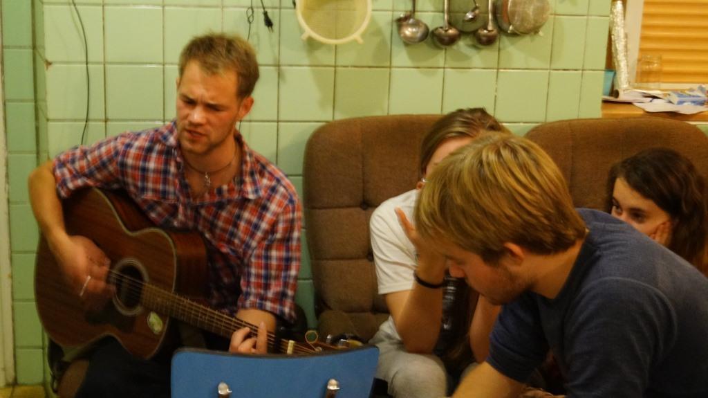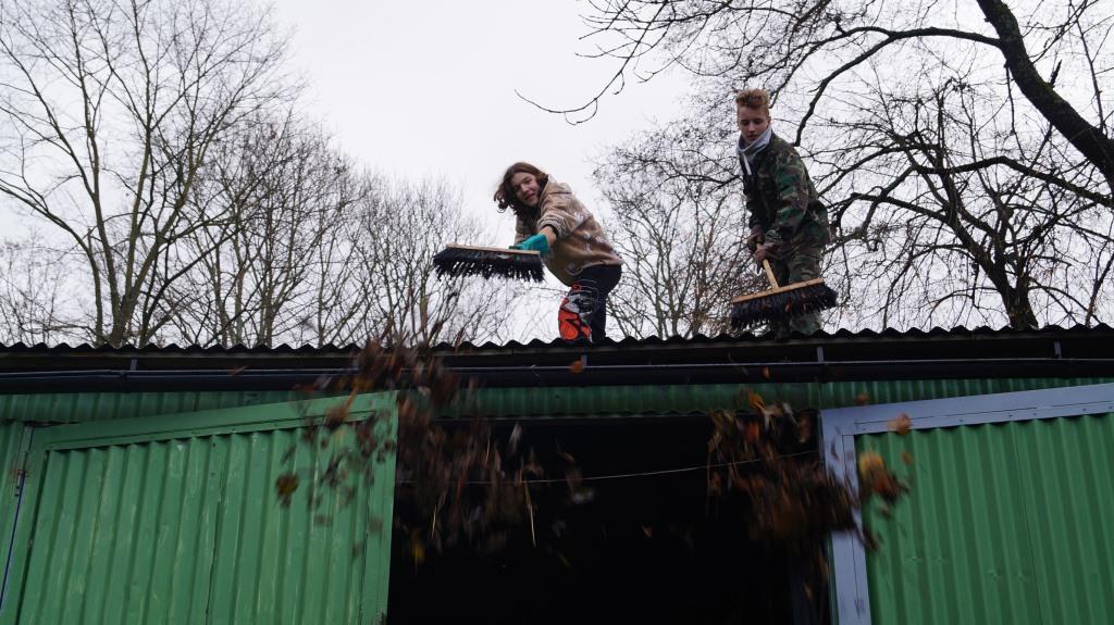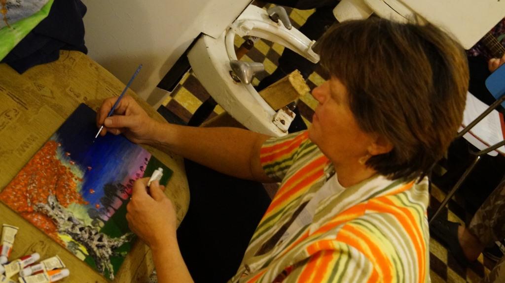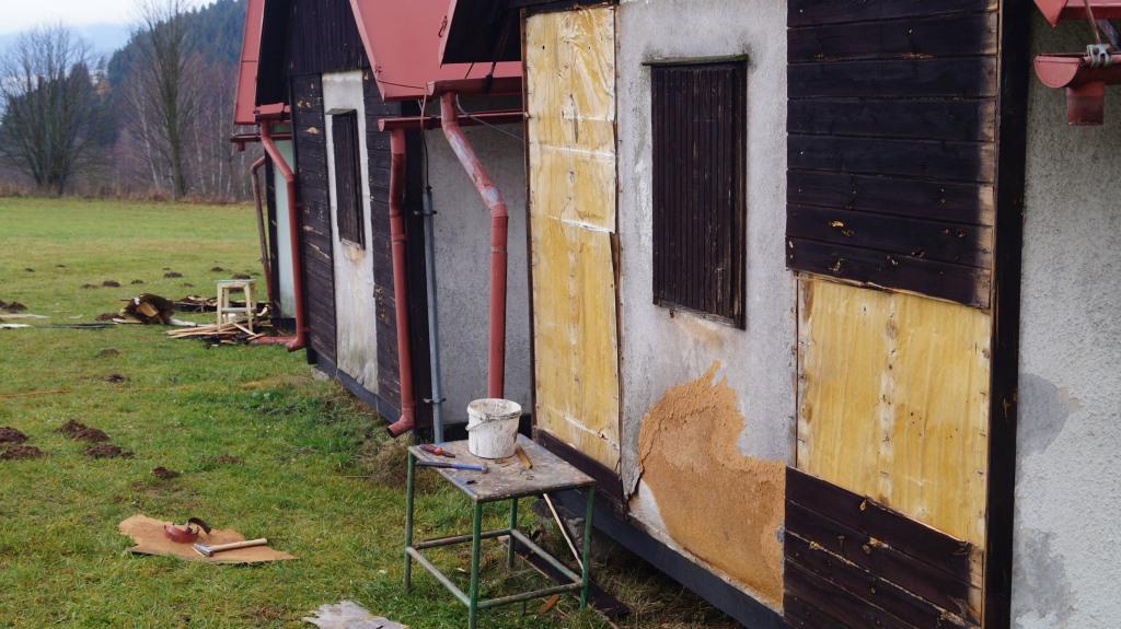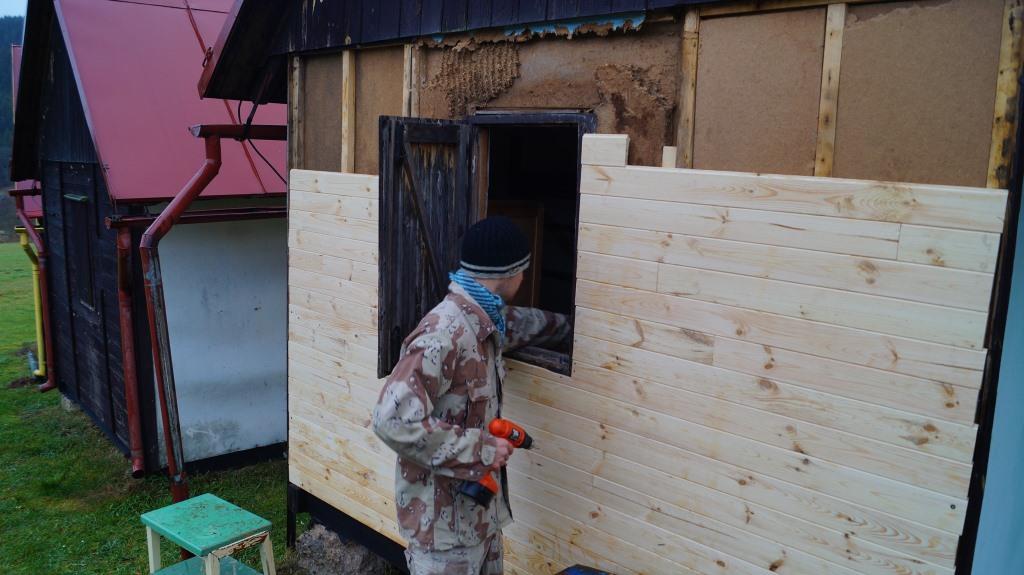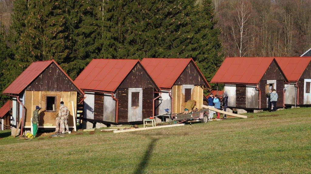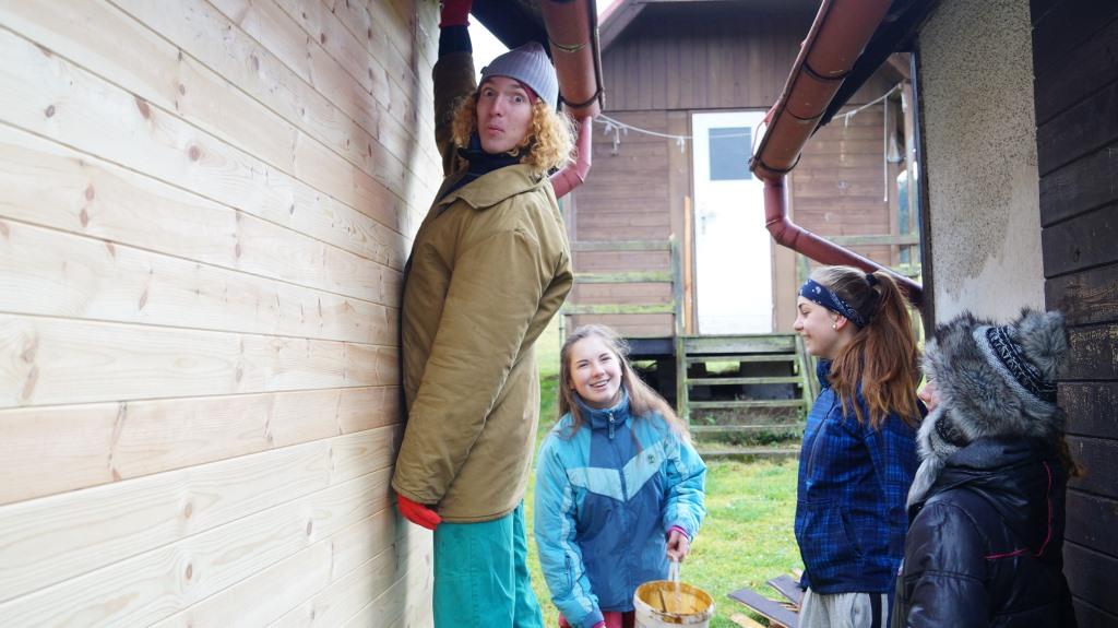 | Děvčata ( mimo Tobiho) budou natírat nové stěny chatek |