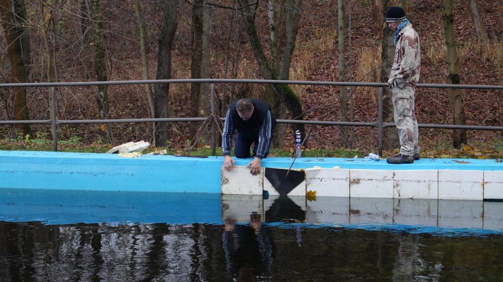 | Aby bazén případným ledem nepopraskal - lepíme polystyrenové desky |