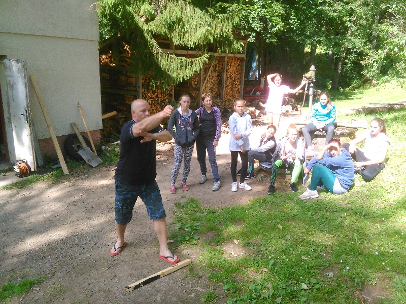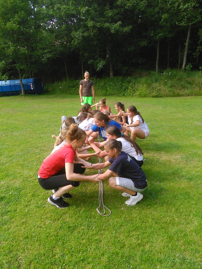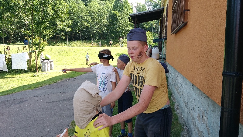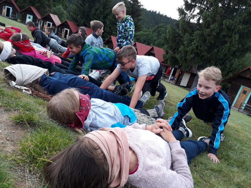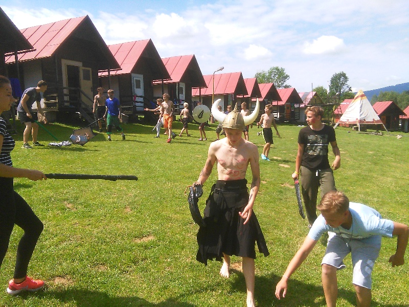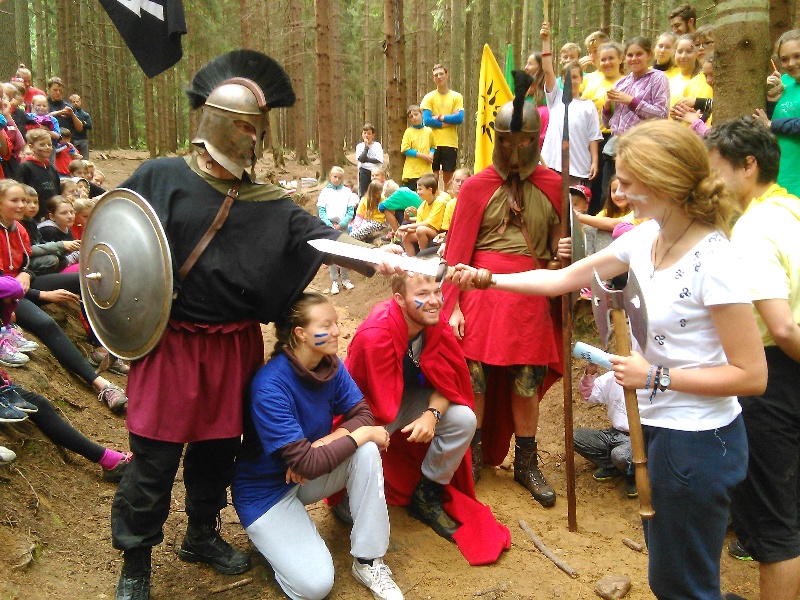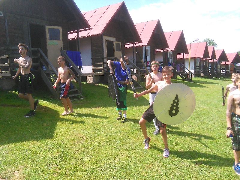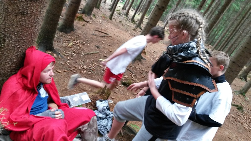 | Čtyřka v rámci povinností uklidila tábor a chystá se na hru |