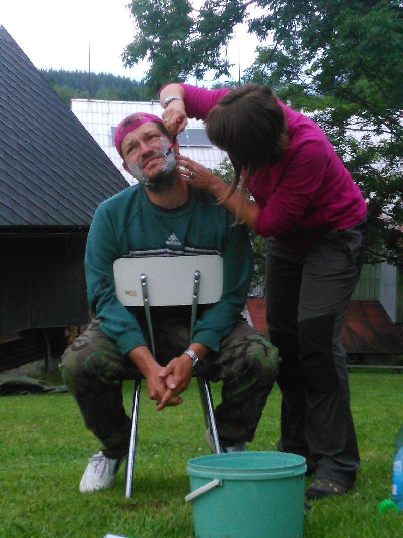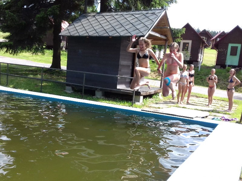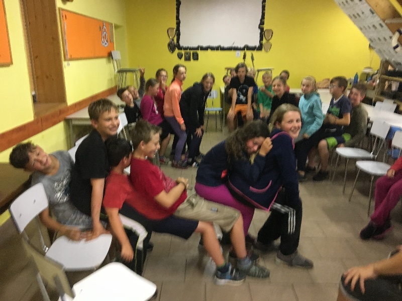 | Venku lije jako z konve, tak se zabavujeme v jídelně |