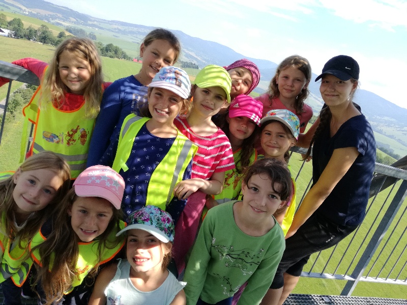 | Nejmenší děvčata při výpravě na rozhlednu |