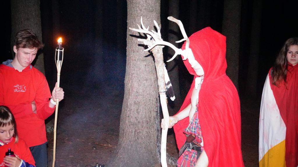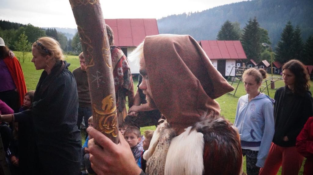 | Celotáborová hra Druidské hole - druid čaruje během hry |