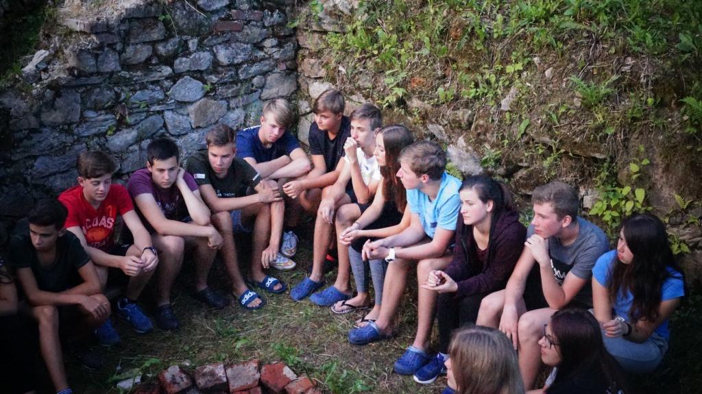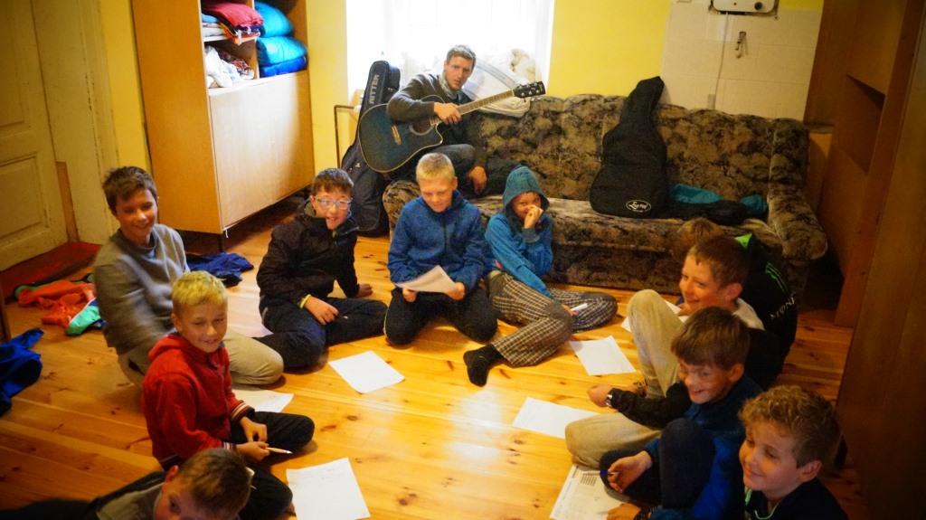 | Prší - kluci z nejstaršího oddílu na klubovně ve Dračím doupěti |