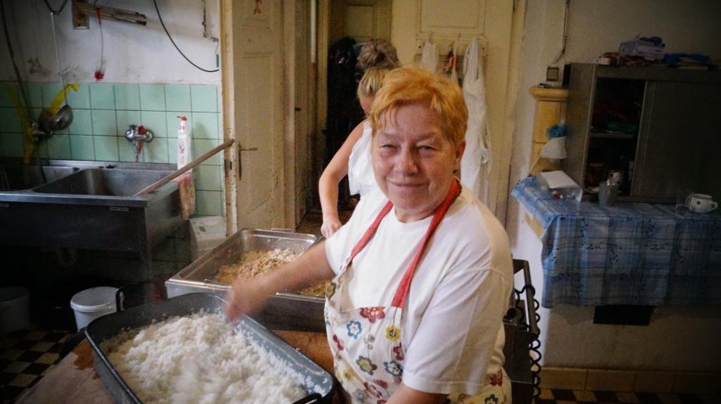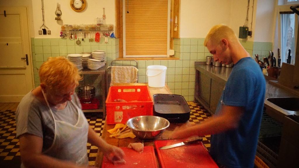 | V kuchyni se ale mezitím pracuje a Jaruščin tým připravuje jídlo na další den |