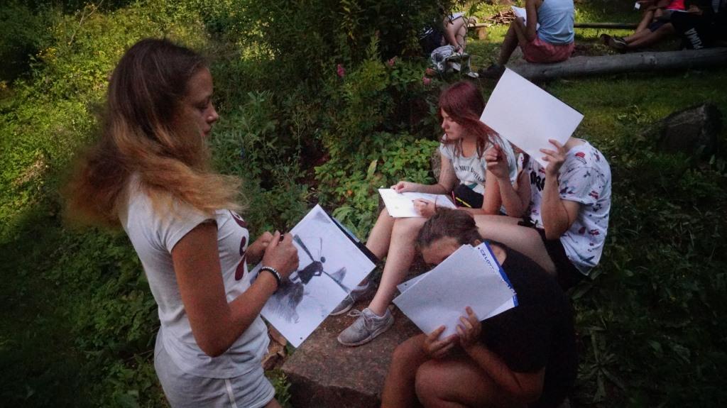 | Dívčí nejstarší oddíl tvoří lapače snů |