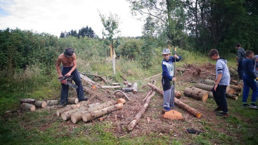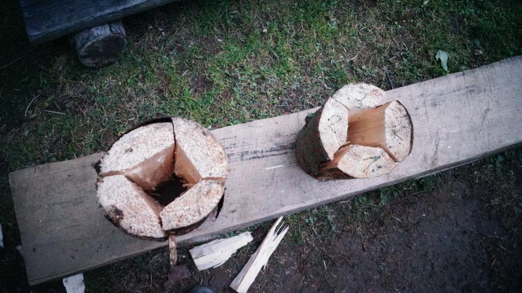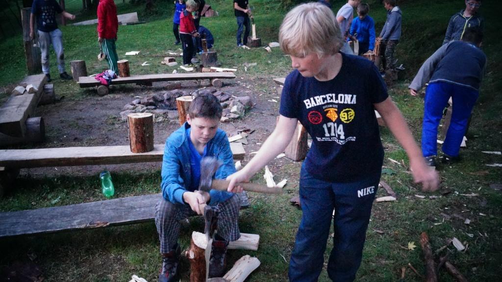 | Šaman připravuje pro 6 oddíl špalíky na finské svíce |