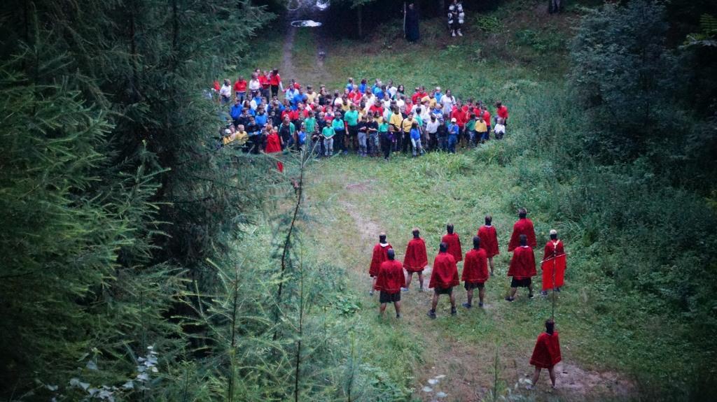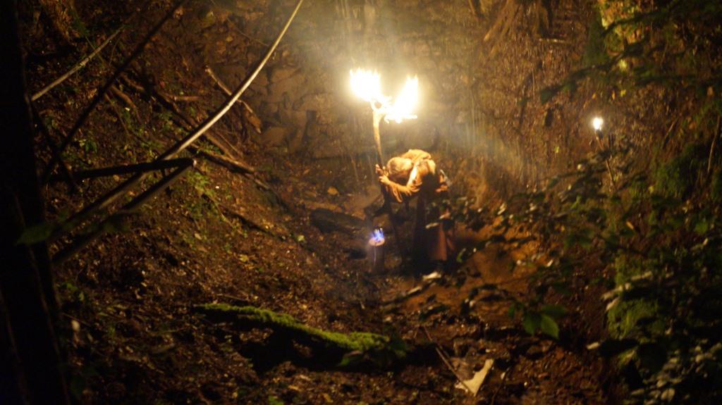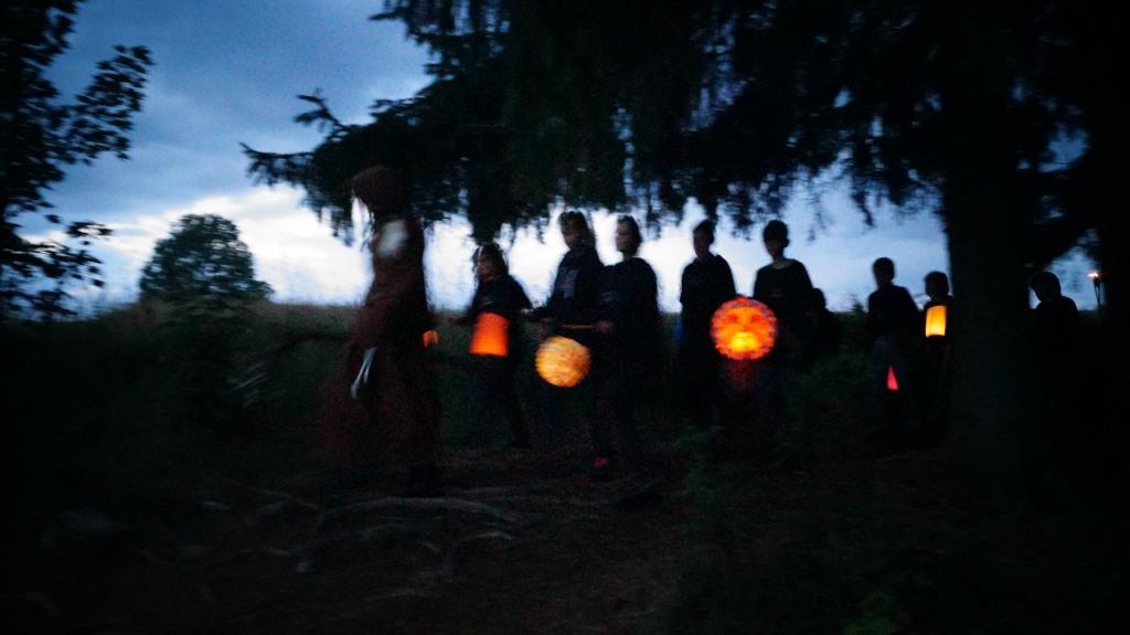 | Noční oslava svátku Keltů Alban Hefin - černí před odchodem |