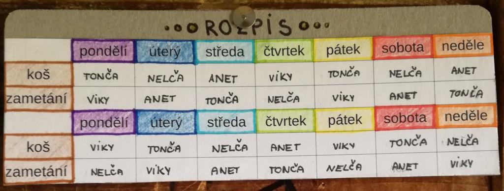 | Překvapení při bodování pořádku - takto si jedna chatka rozvrhla péči o pořádek |