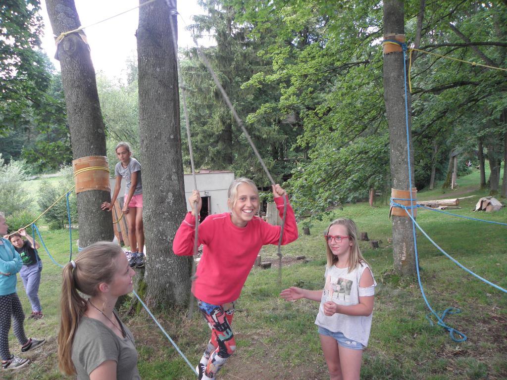 | Učíme se šplhat po laně za pomoci dalších dvou lan |