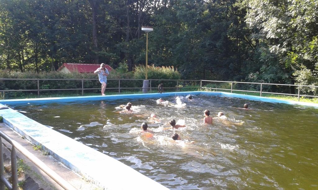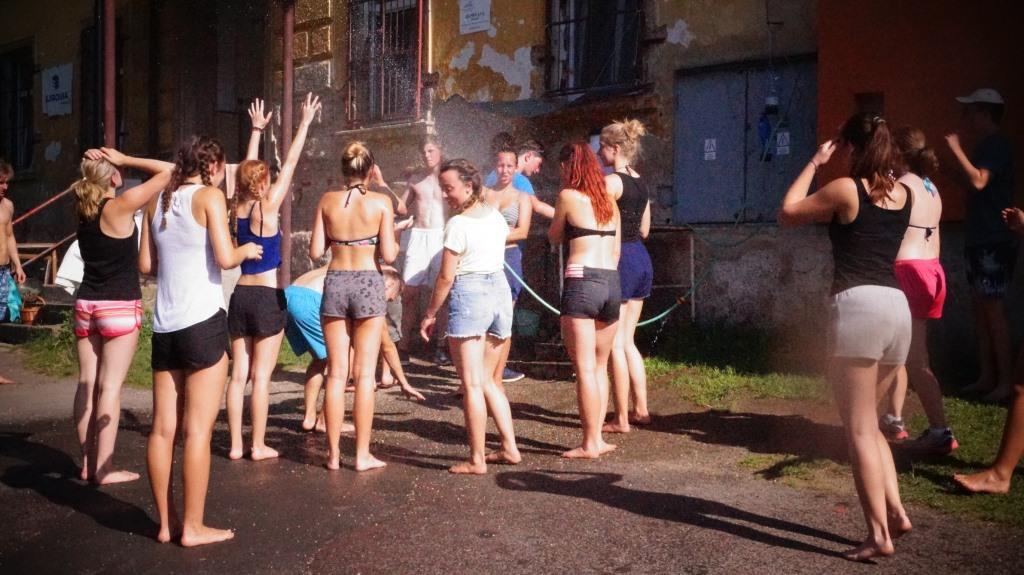 | Je horko - kromě bazénu - abychom neztratili čas - se zkrápíme vodičkou z hadičky |