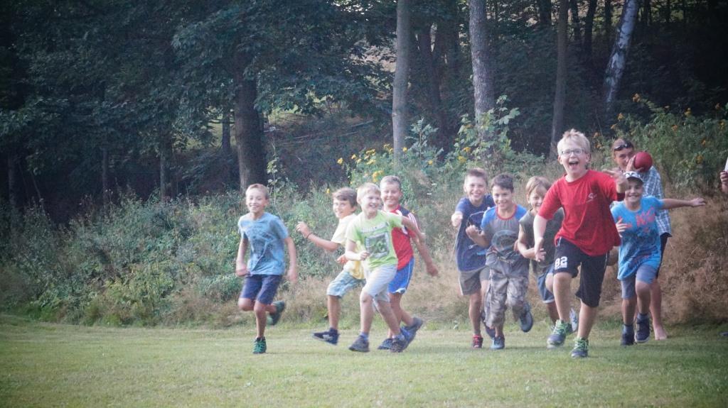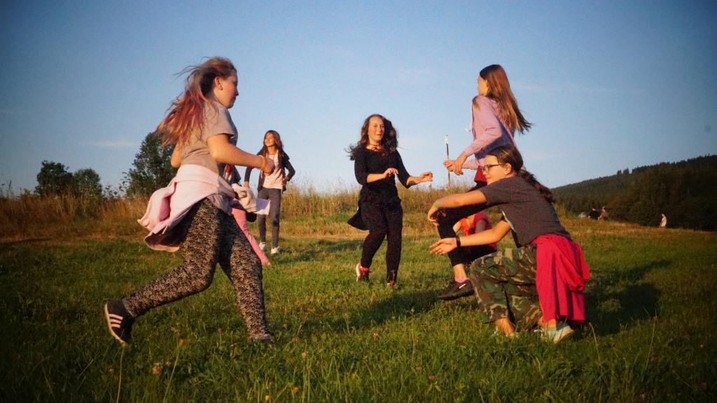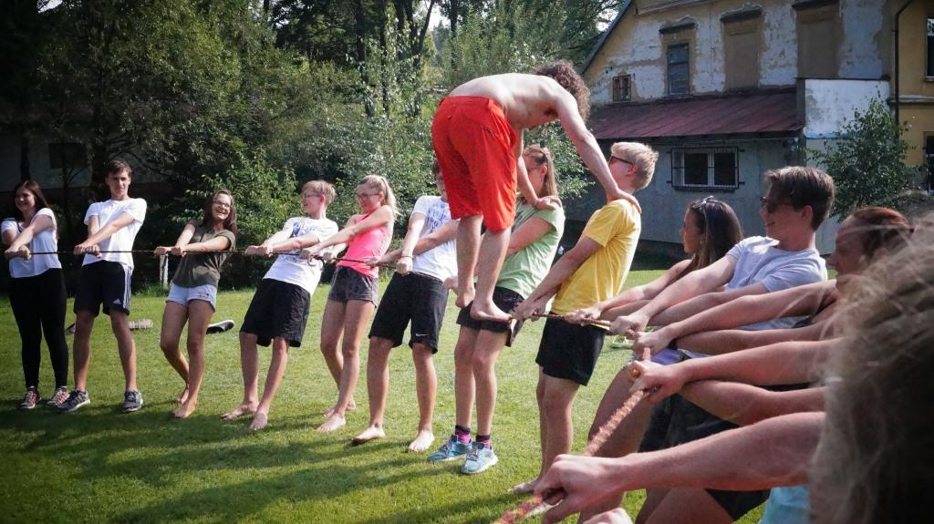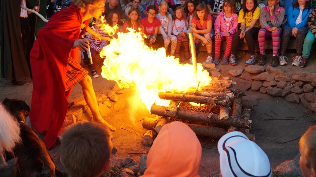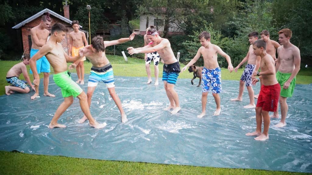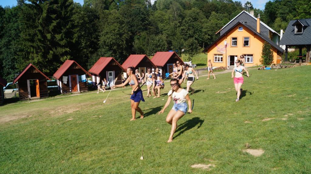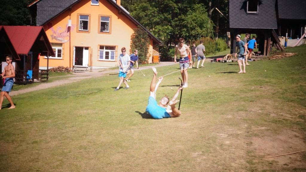 | Další etapa hry pro mladší tábor Král pod horou a přeskočit potok |