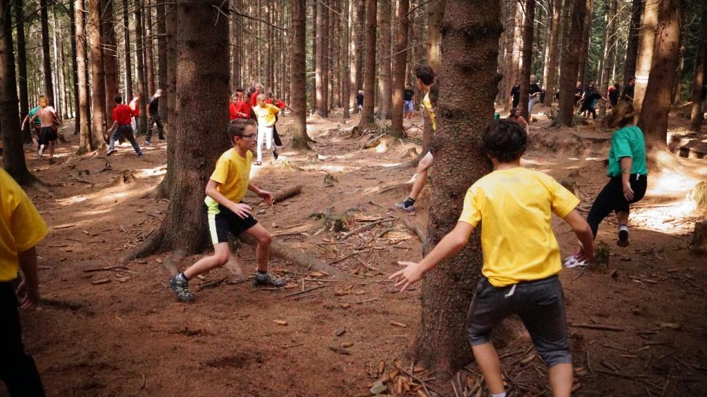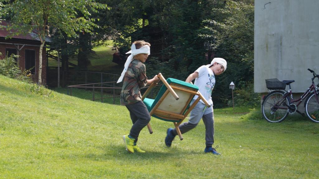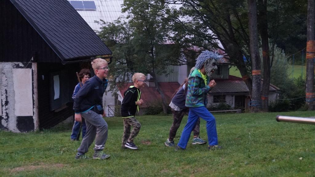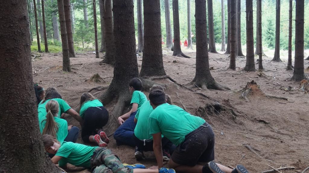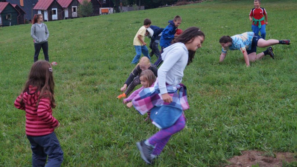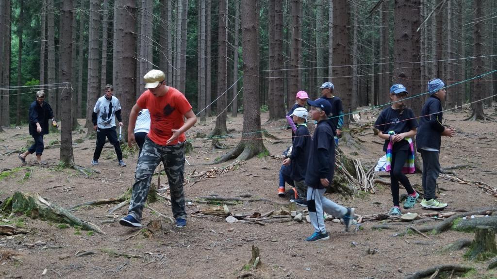 | Další etapa hry pro mladší tábor Král pod horou - kolem obrů se musíme proplížit... |