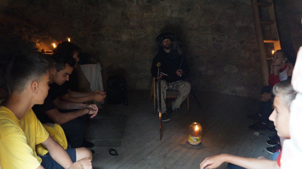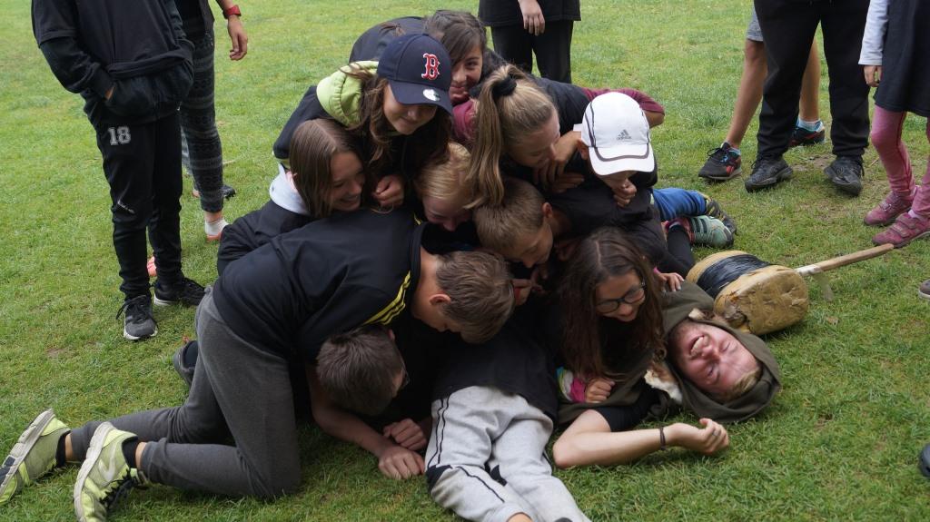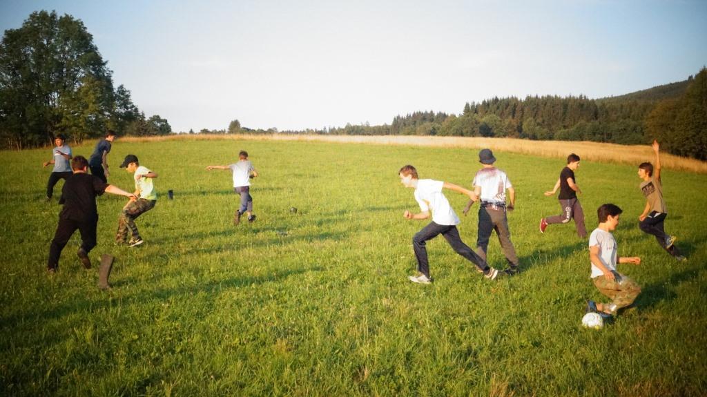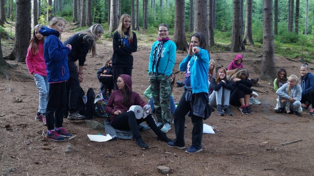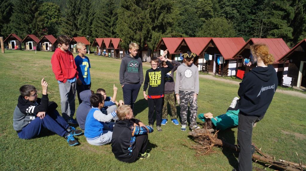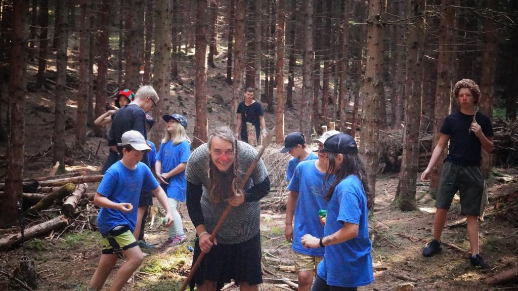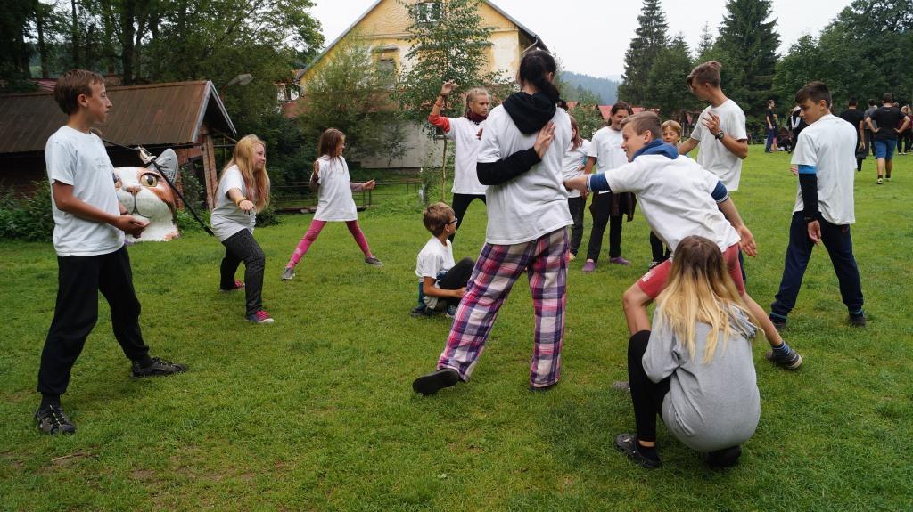 | Další etapa hry pro mladší tábor Král pod horou - kolem obrů se musíme proplížit... |