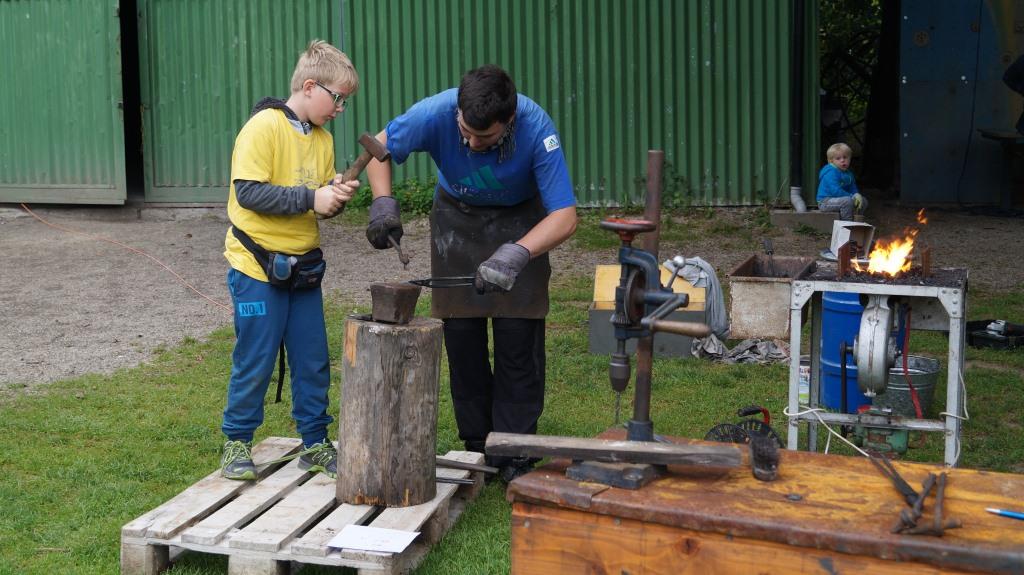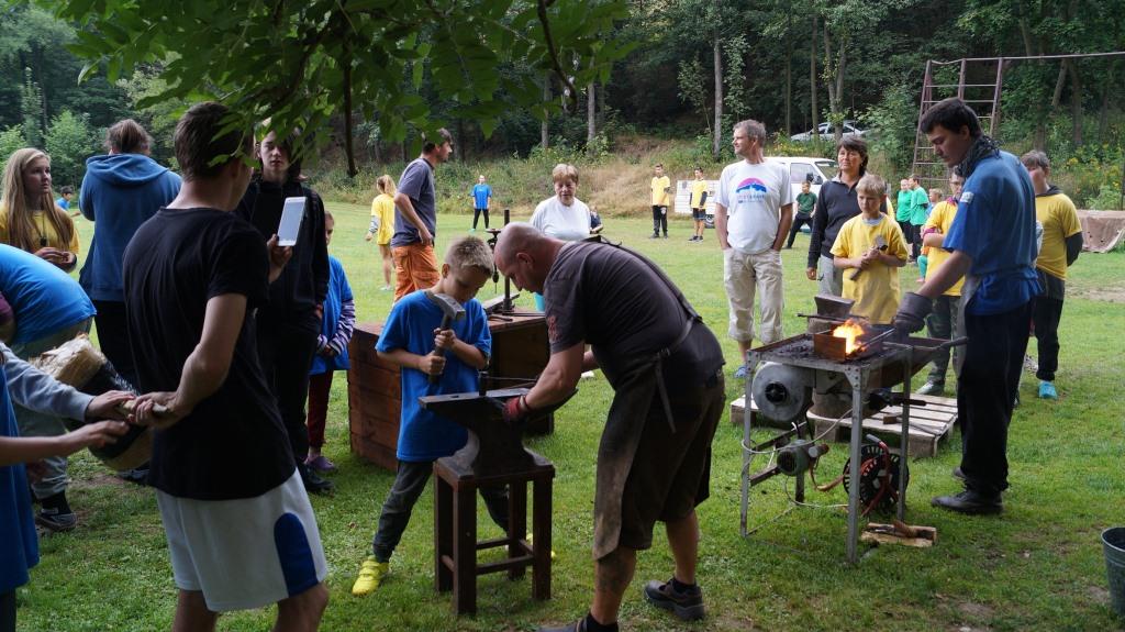 | Děti spolu s kováři si kovají své runy na přívěšky |
