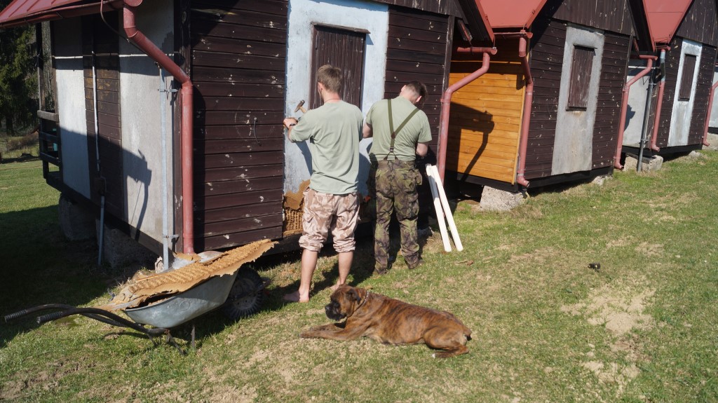 Na táboře probíhájí opravy chatek