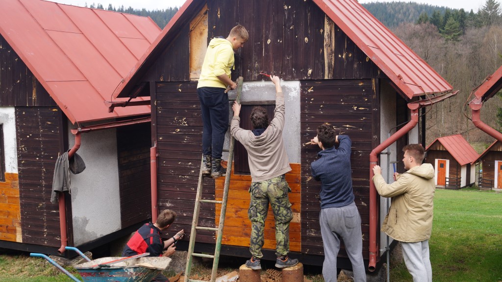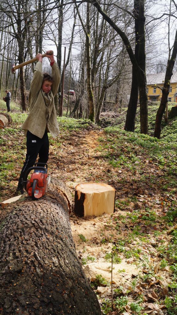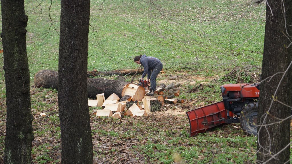 | Sobota - pracujeme - zpracováváme pokácené kmeny |
